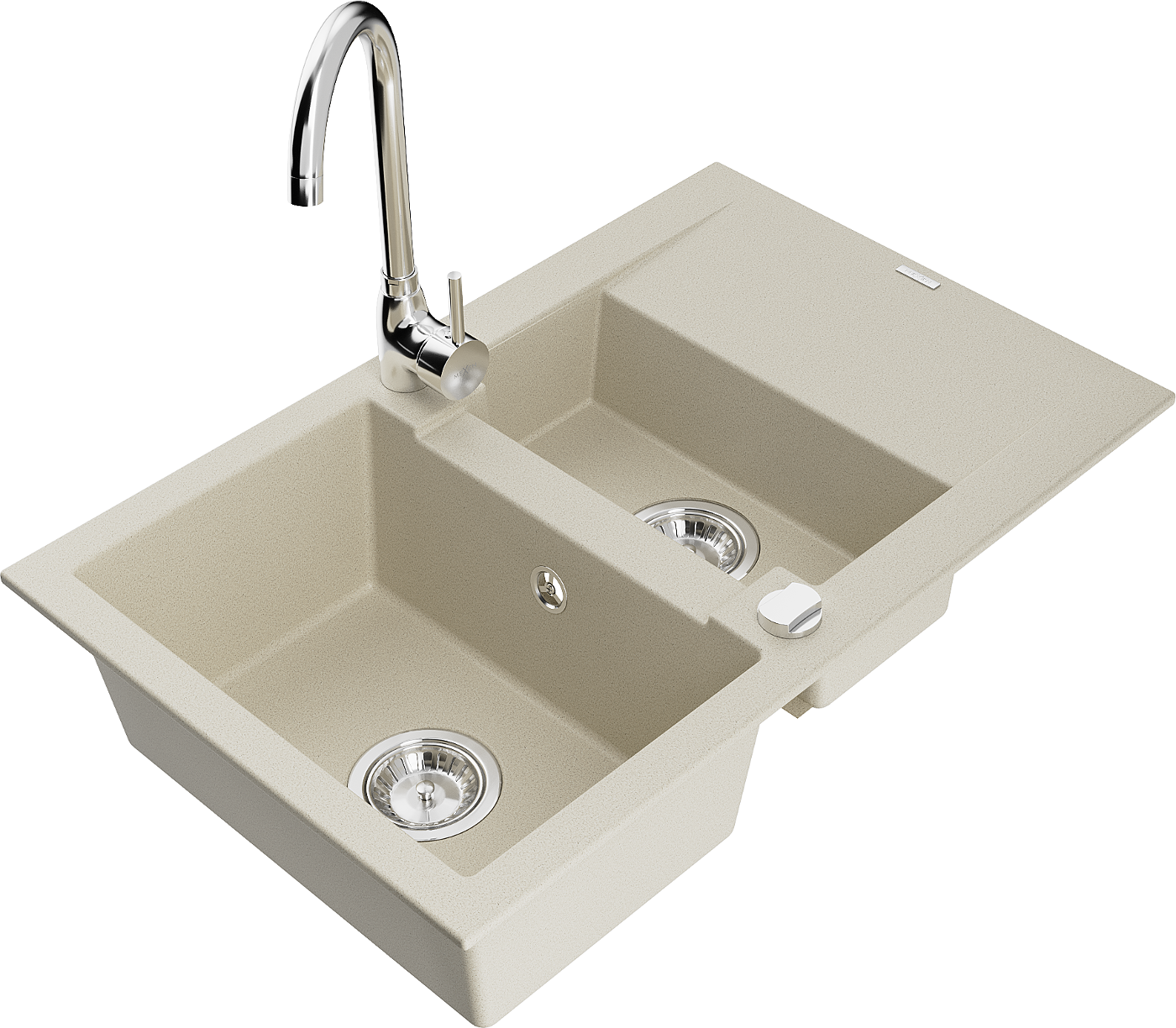 Mexen Gaspar gránit mosogató 1,5-medencés csepegtetővel és Telma konyhai csappal, bézs - 6507-69-670200-00