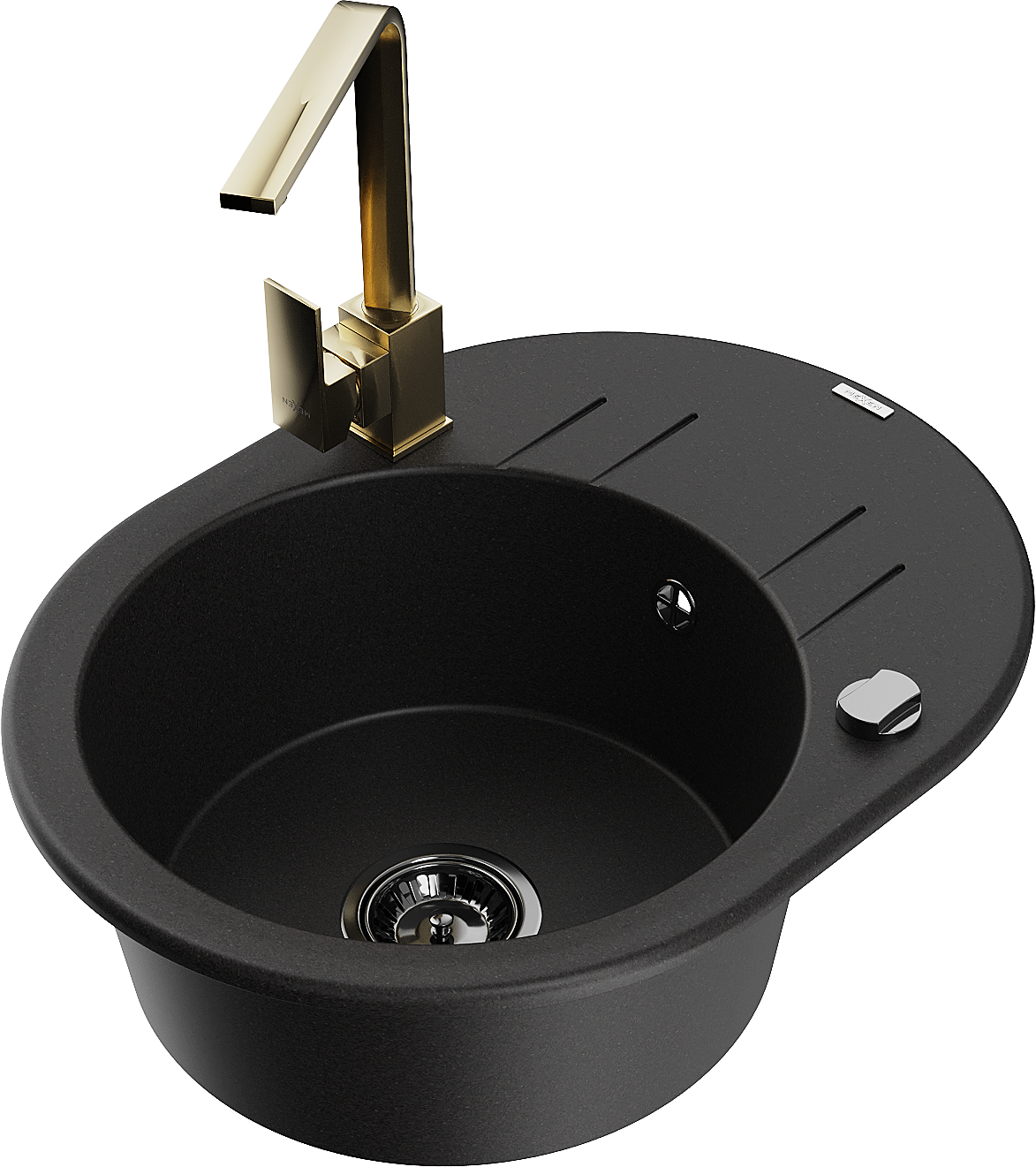 Mexen Kevin egymedencés gránit mosogató lefolyós konyhai csappal Rita, fekete - 6517-77-670300-50-B