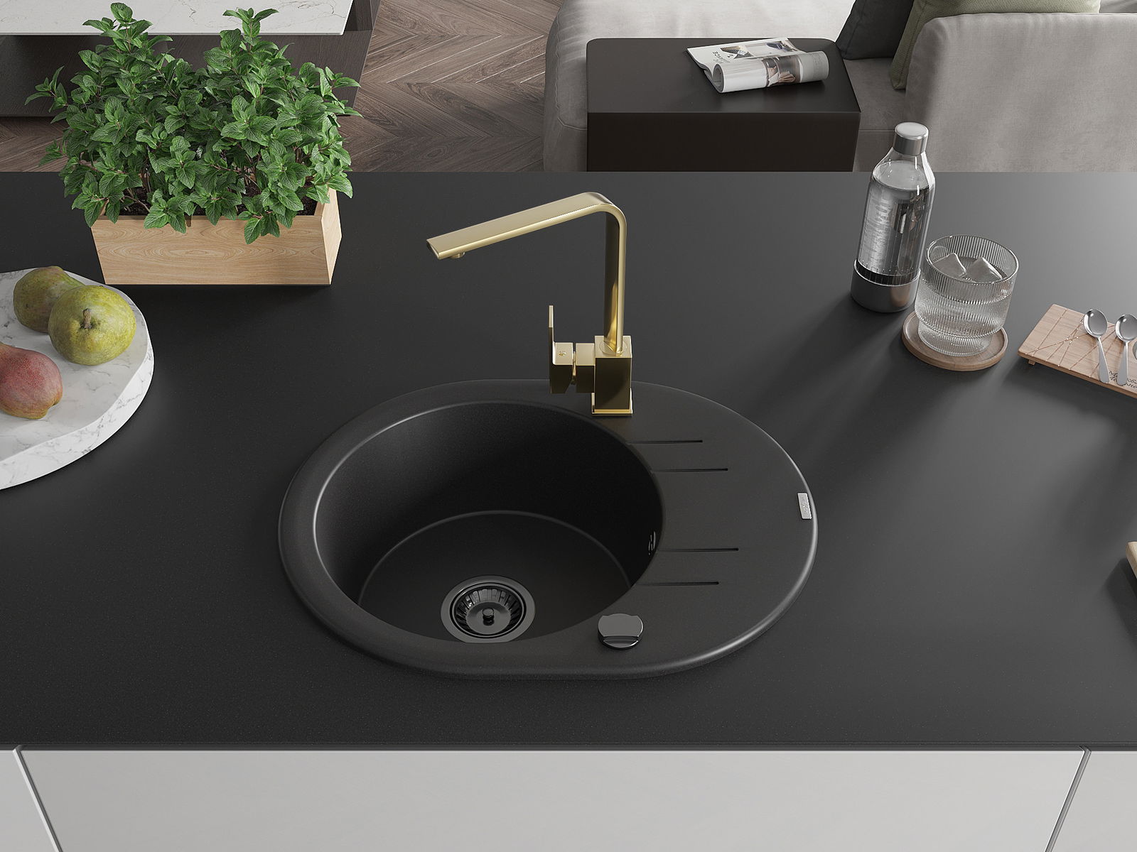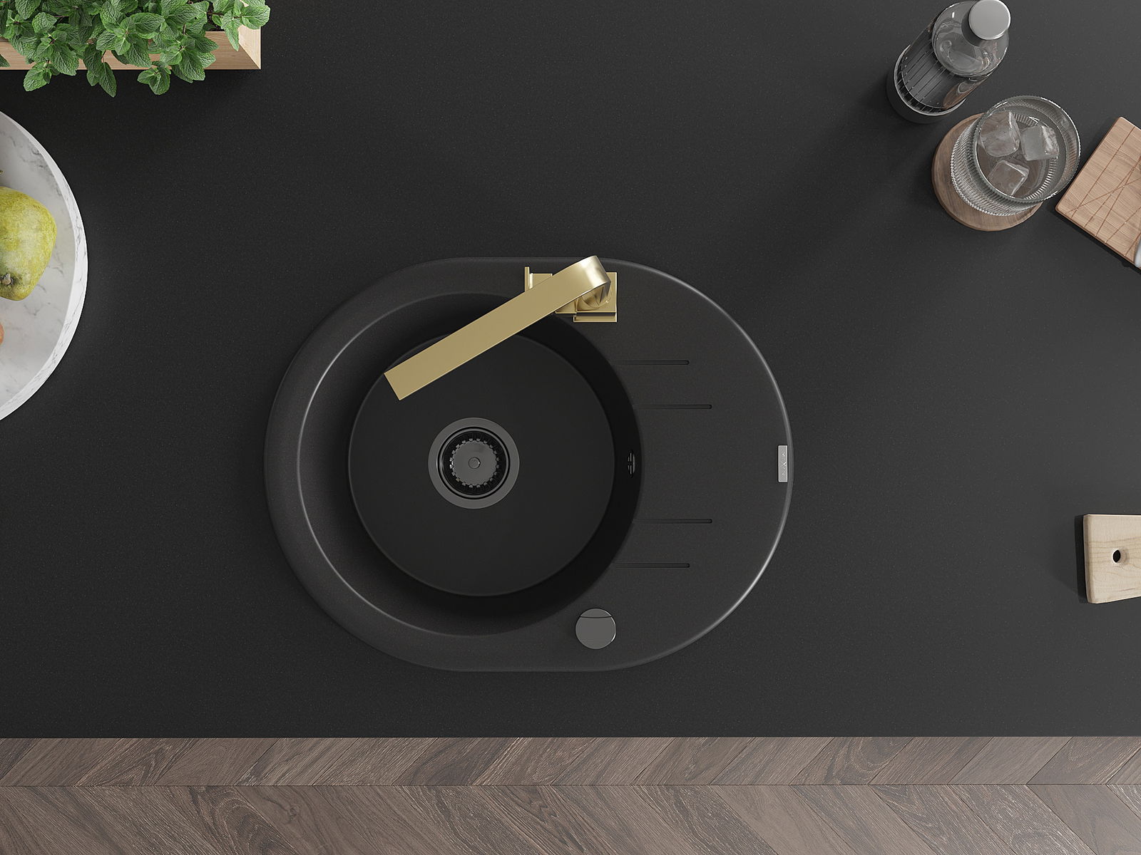 A mosogató magas minőségű gránitból készült. Elegáns, de mindenekelőtt praktikus kiegészítője minden konyhának, függetlenül annak stílusától. A gránit magas minősége és tartóssága hosszú távú használatot biztosít.