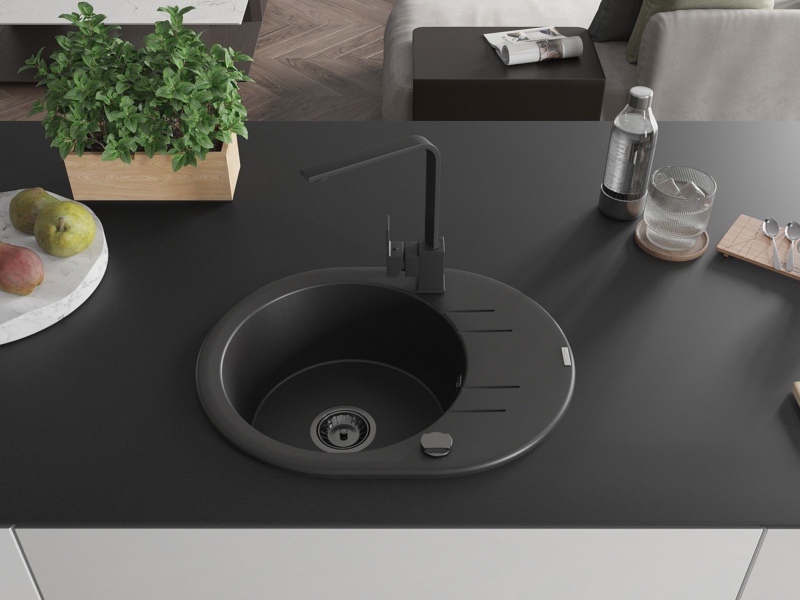 A mosogató magas minőségű gránitból készült. Elegáns, de mindenekelőtt praktikus kiegészítője minden konyhának, függetlenül annak stílusától. A gránit magas minősége és tartóssága hosszú távú használatot biztosít.