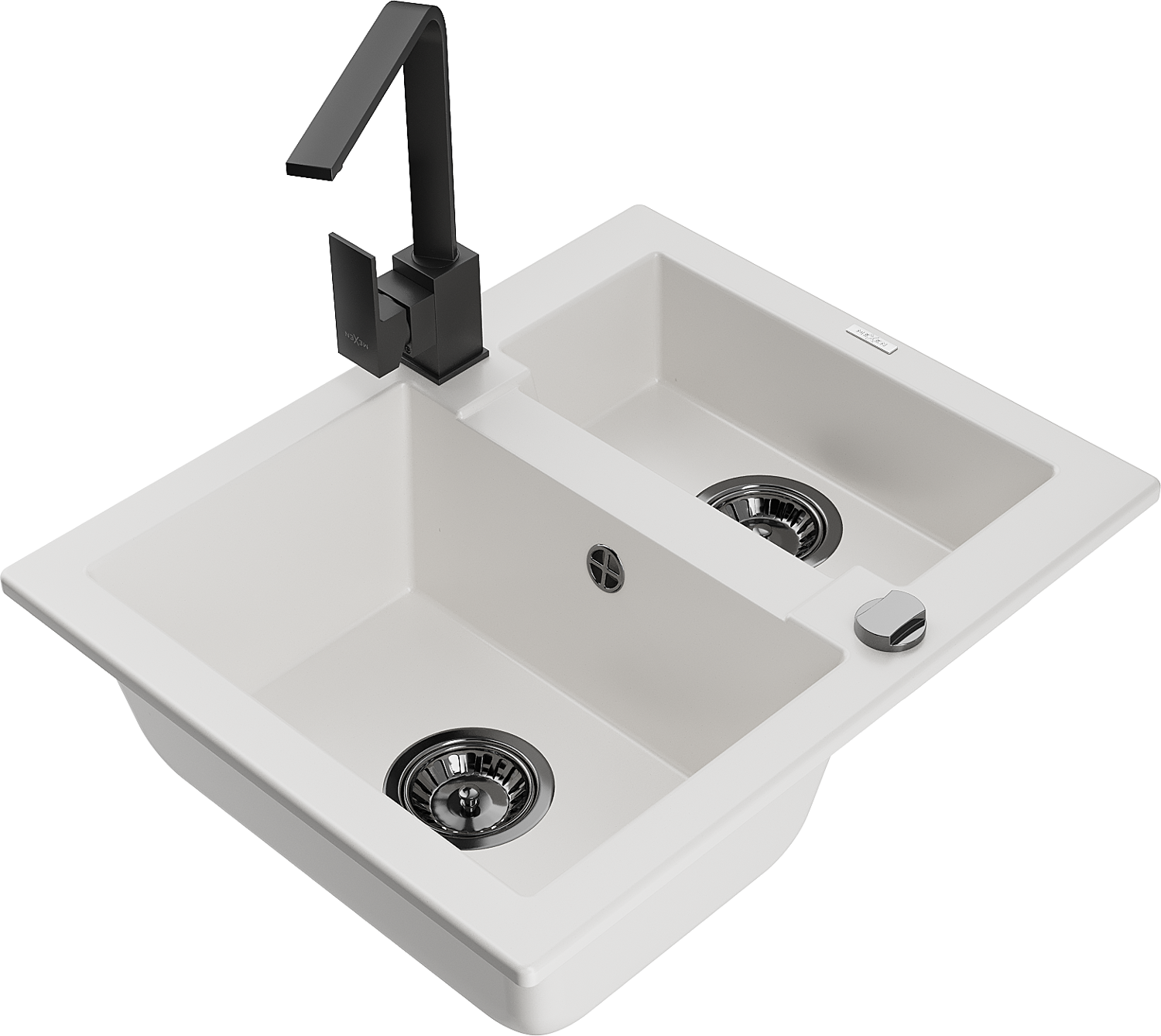 Mexen Carlos 1,5 kamrás gránit mosogató Rita konyhai csappal, fehér - 6518-20-670300-70