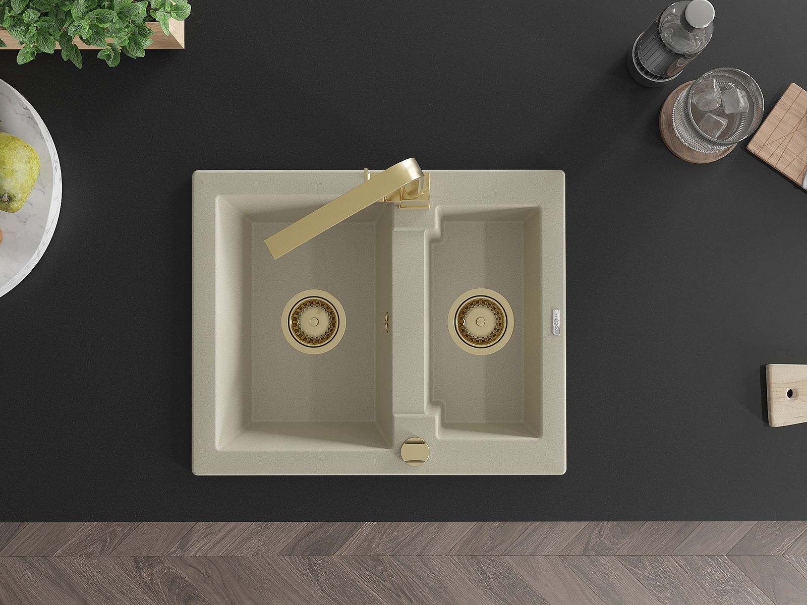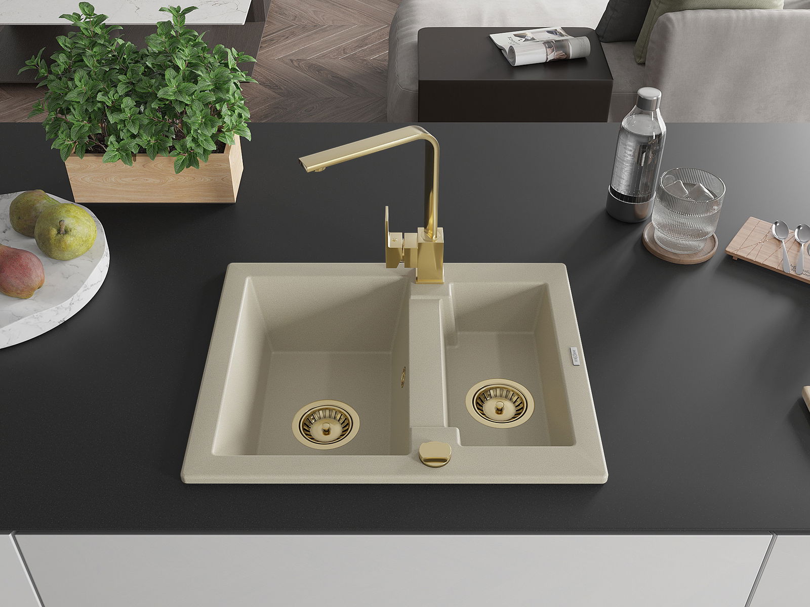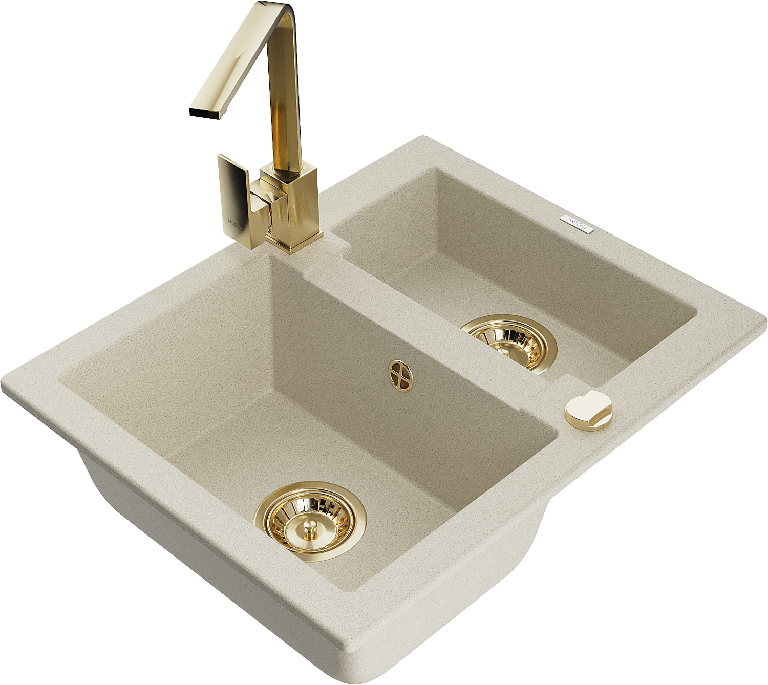 Mexen Carlos gránit mosogató 1,5 rekeszes Rita konyhai csapteleppel, bézs - 6518-69-670300-50