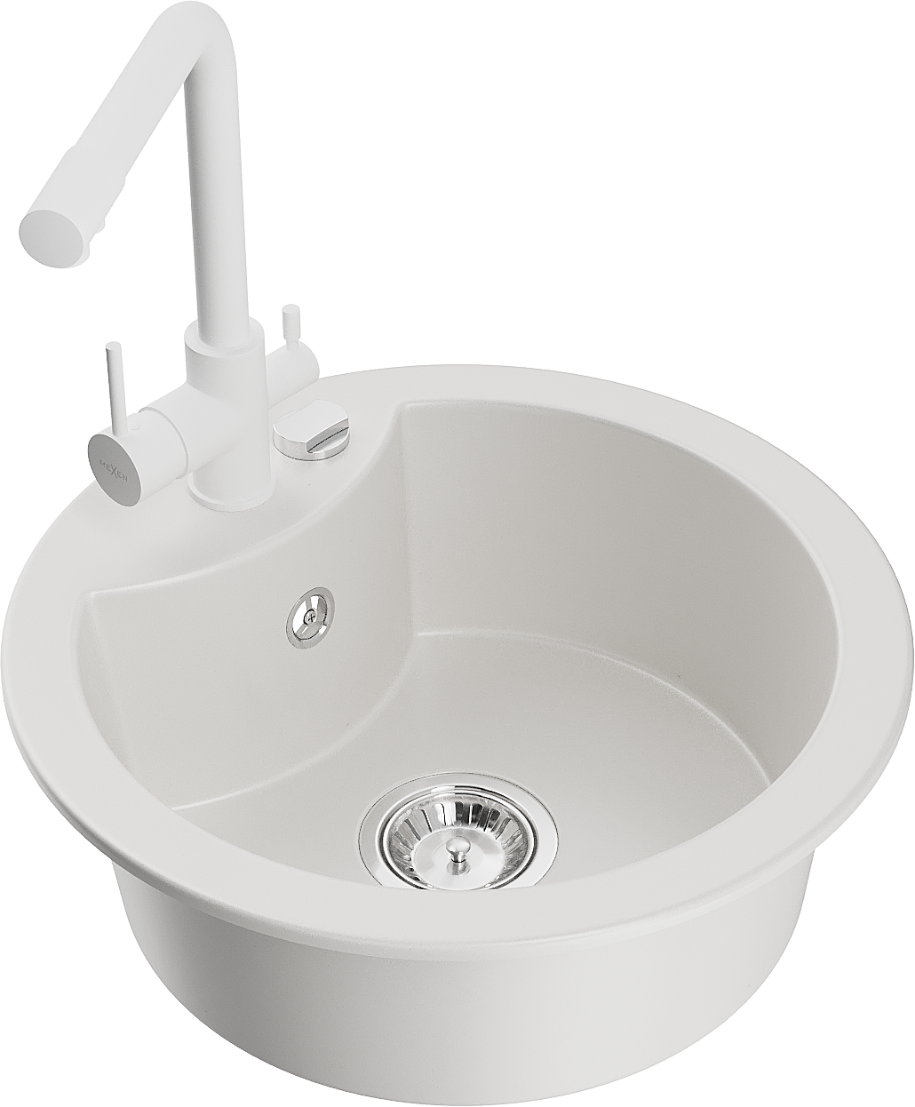 Mexen Diego gránit mosogató 1-medencés konyhai csapteleppel Duero, fehér - 6512-20-671600-20