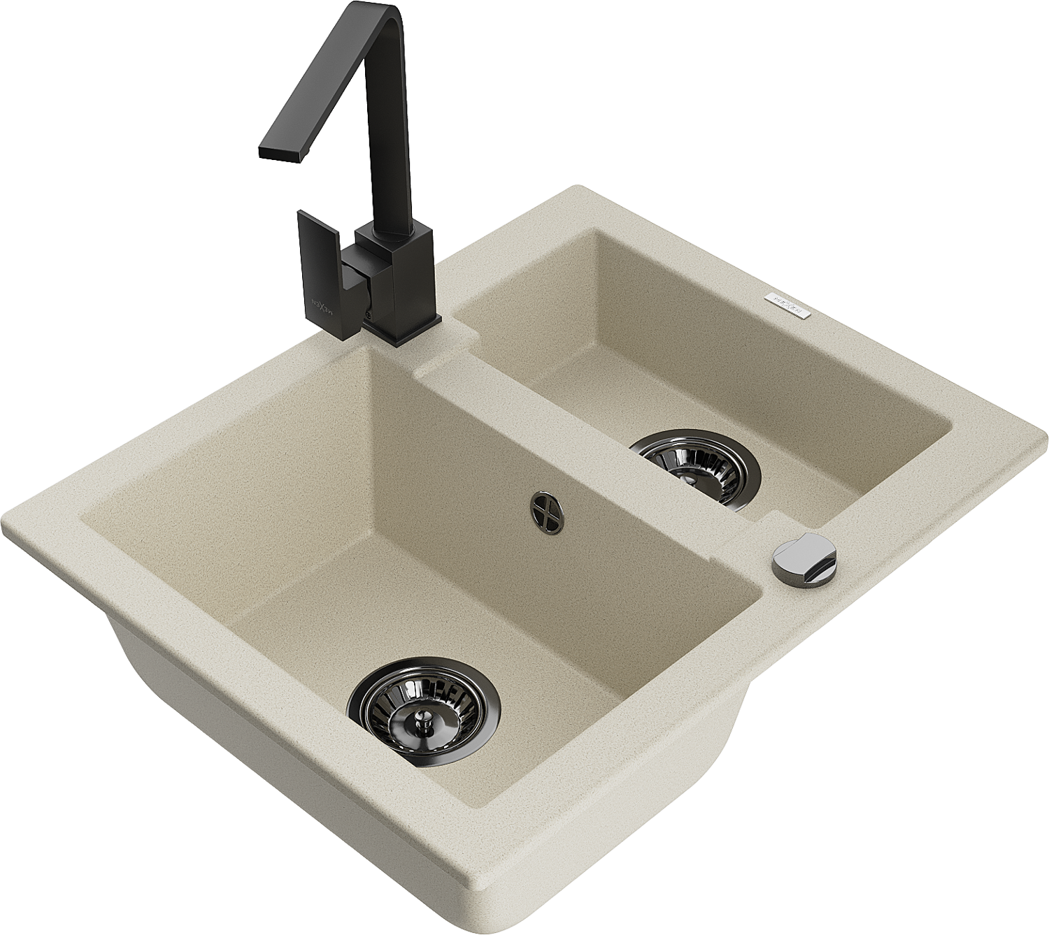 Mexen Carlos gránit mosogató 1,5 rekeszes Rita konyhai csappal, bézs - 6518-69-670300-70