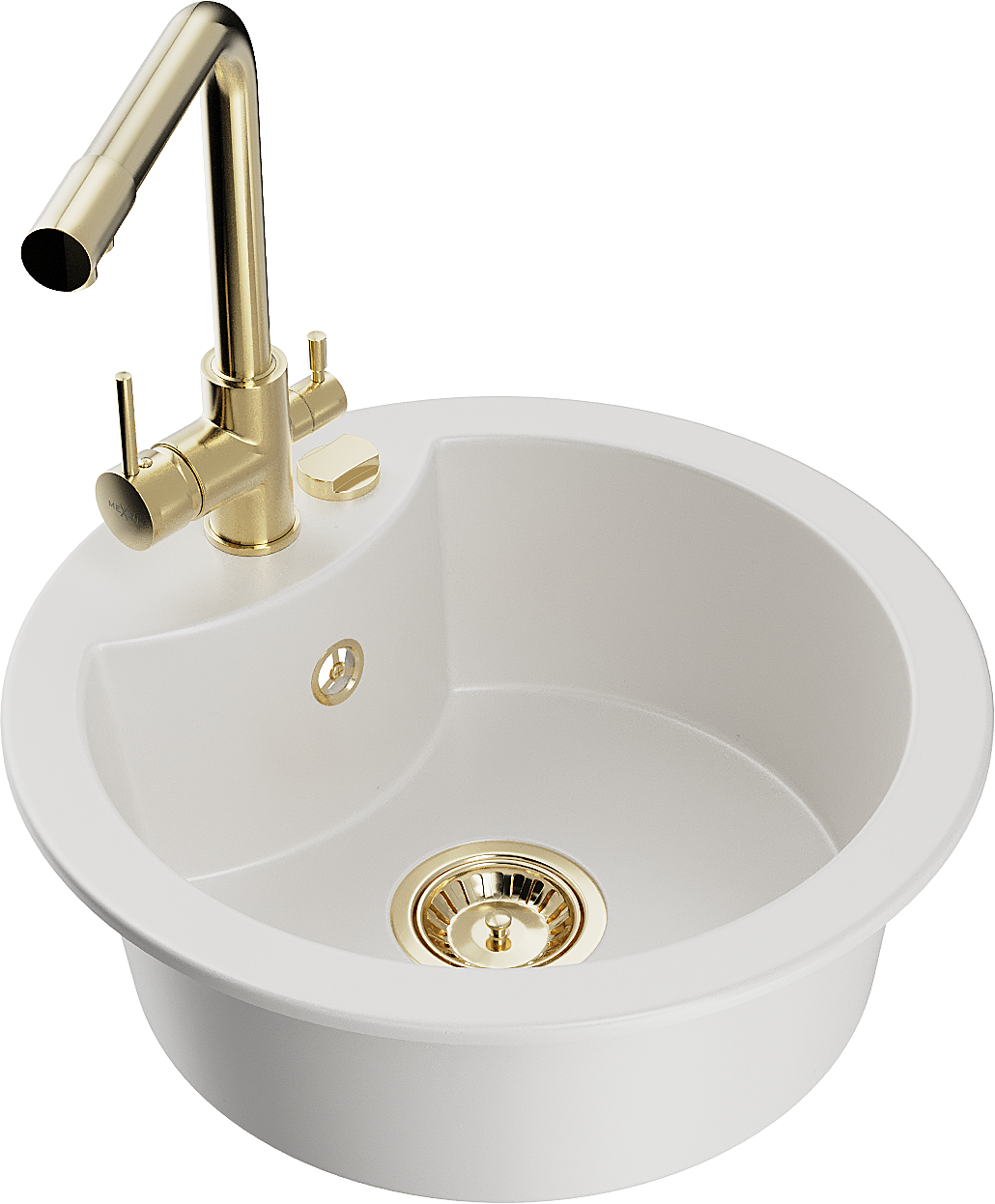 Mexen Diego egymedencés gránit mosogató Duero konyhai csappal, fehér - 6512-20-671600-50