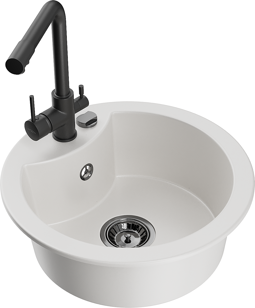 Mexen Diego gránit mosogató 1-medencés Duero konyhai csappal, fehér - 6512-20-671600-70