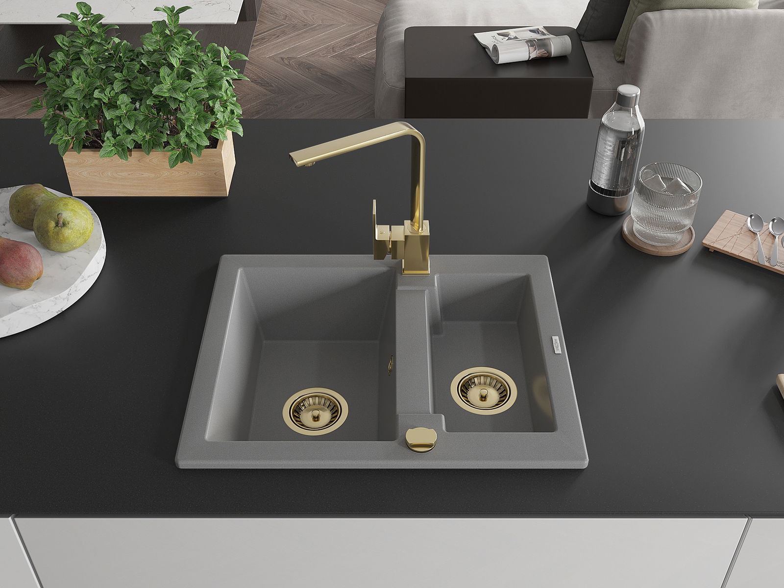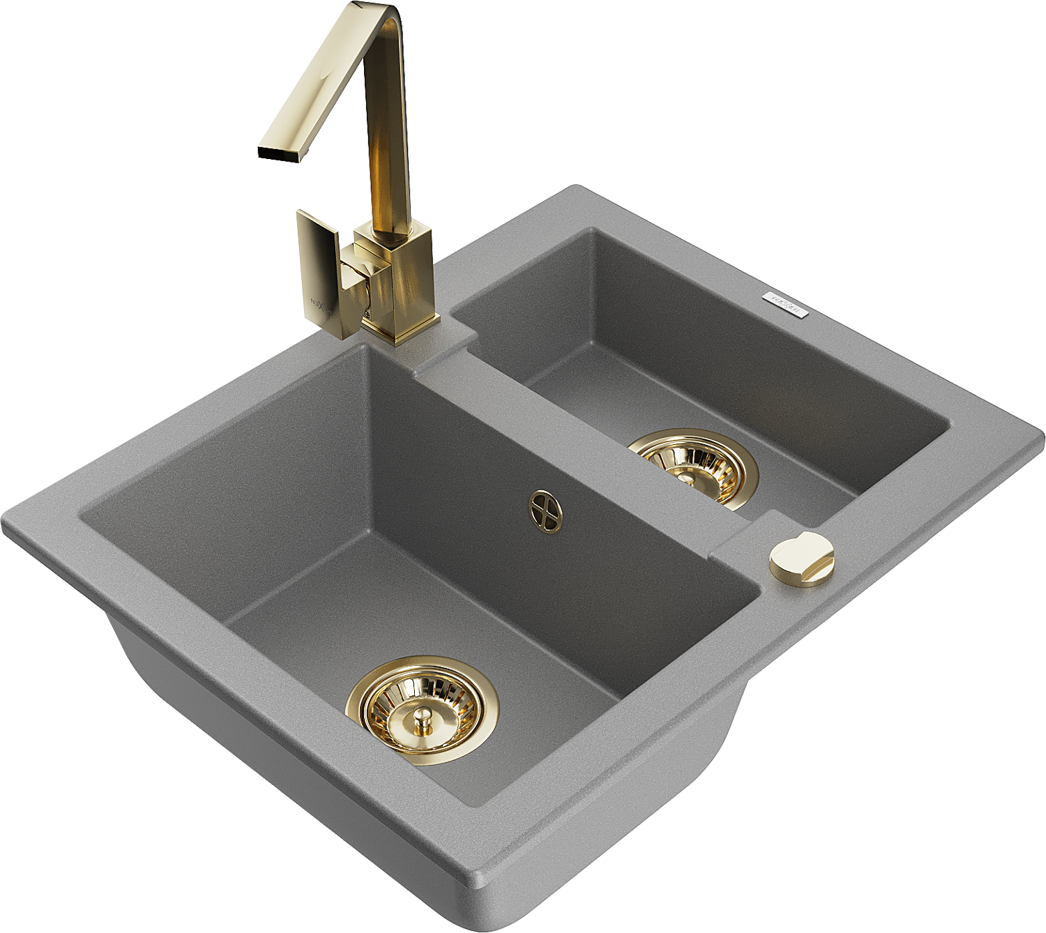 Mexen Carlos gránit mosogató 1,5 rekeszes Rita konyhai csapteleppel, szürke - 6518-71-670300-50
