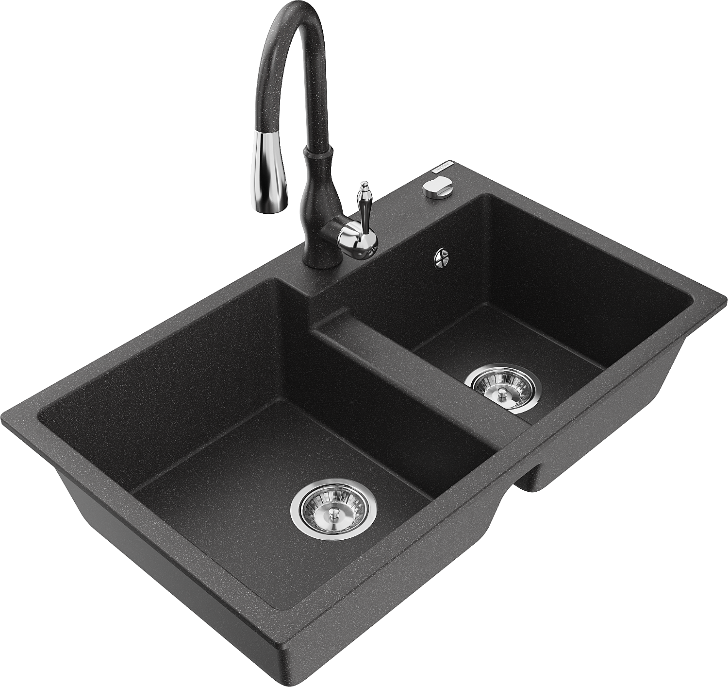 Mexen Tomas gránit 2-medencés mosogató konyhai csappal Savita, fekete pettyes - 6516-76-672601-76