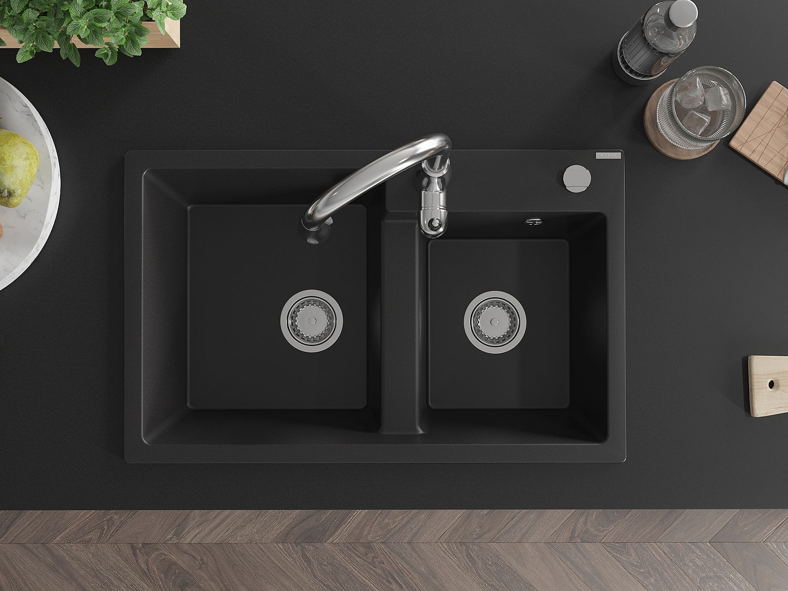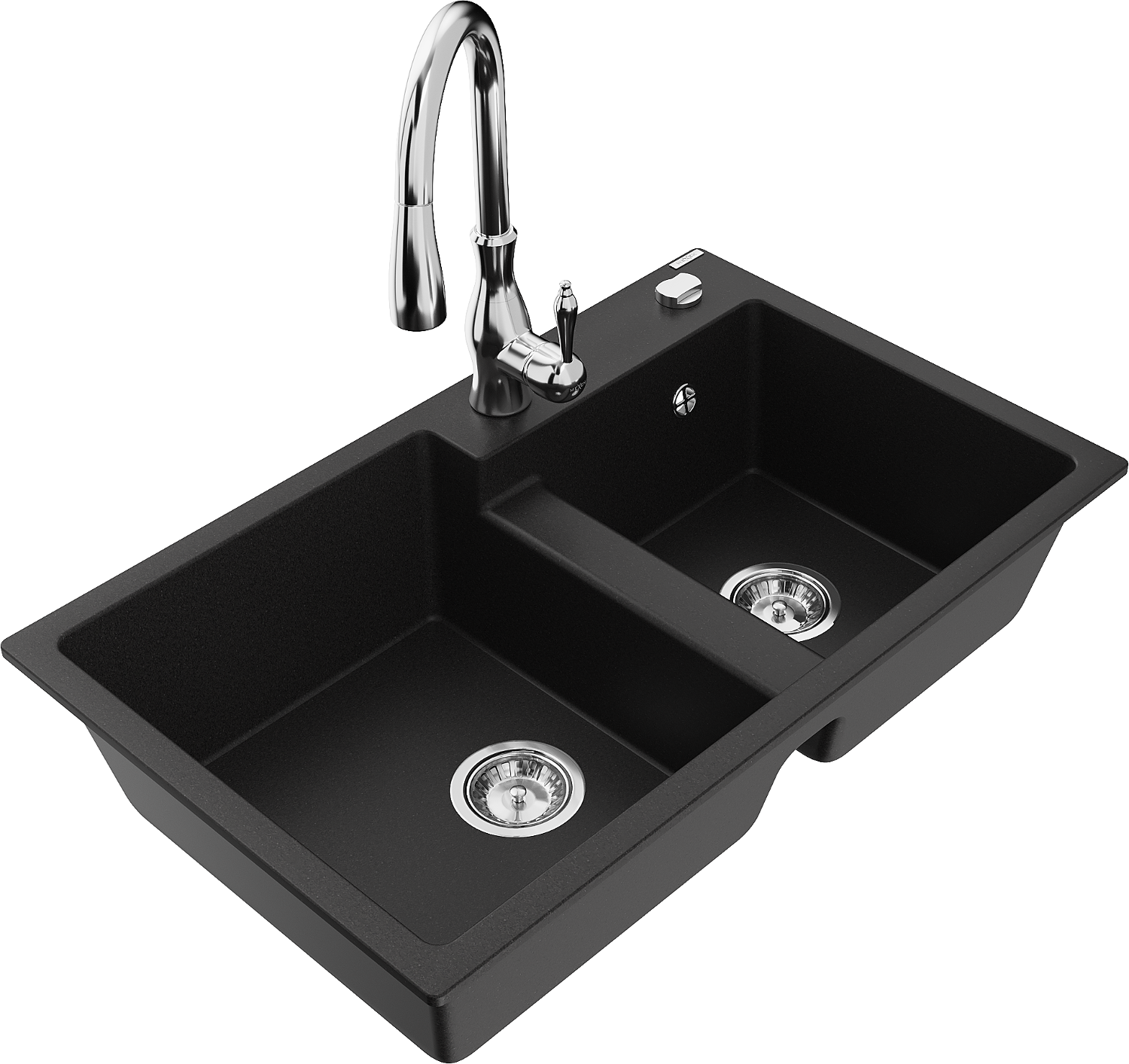 Mexen Tomas 2 rekeszes gránit mosogató Savita konyhai csapteleppel, fekete - 6516-77-672601-00