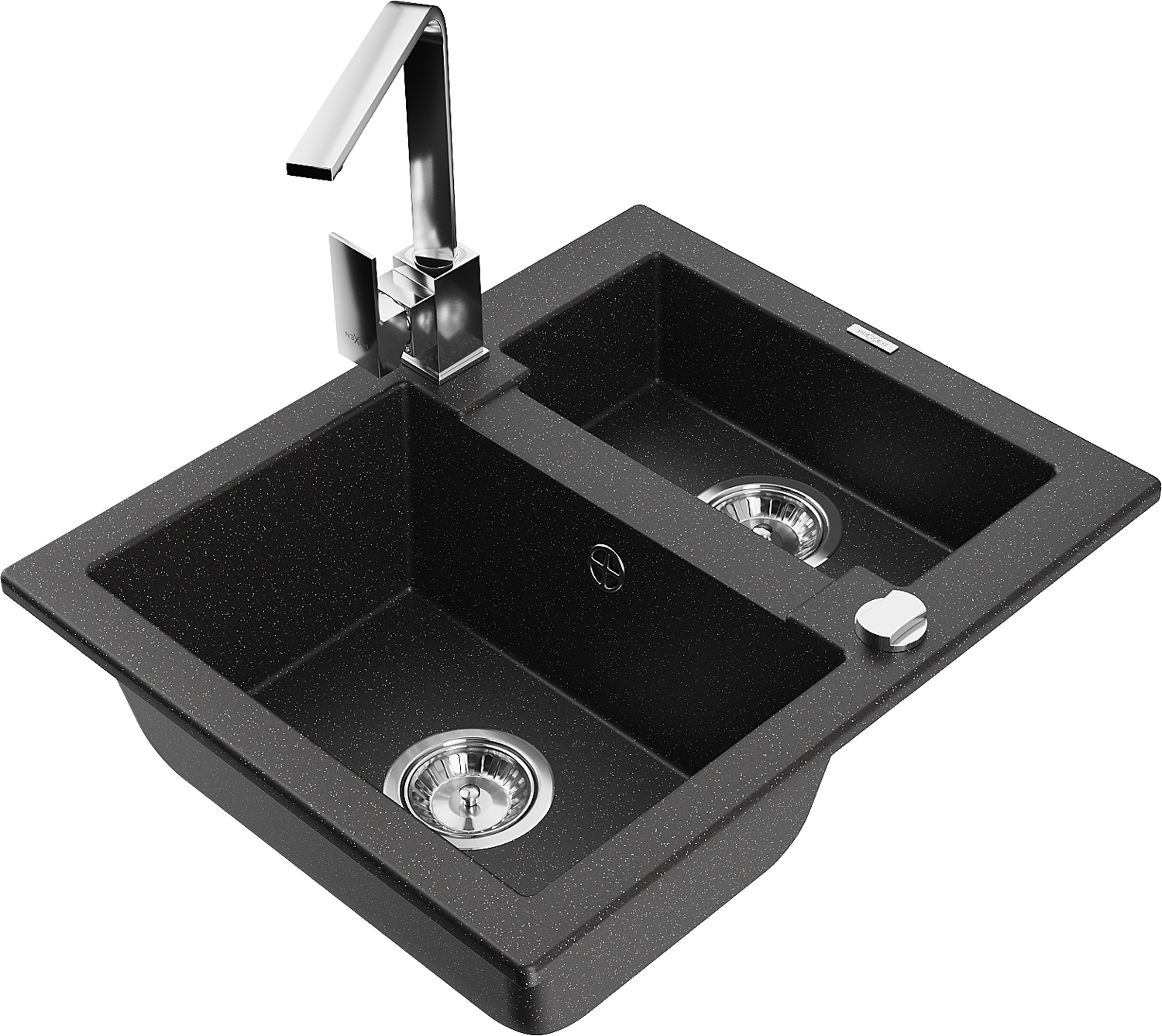 Mexen Carlos 1,5 rekeszes gránit mosogató Rita konyhai csapteleppel, fekete/ezüst metál - 6518-73-670300-00