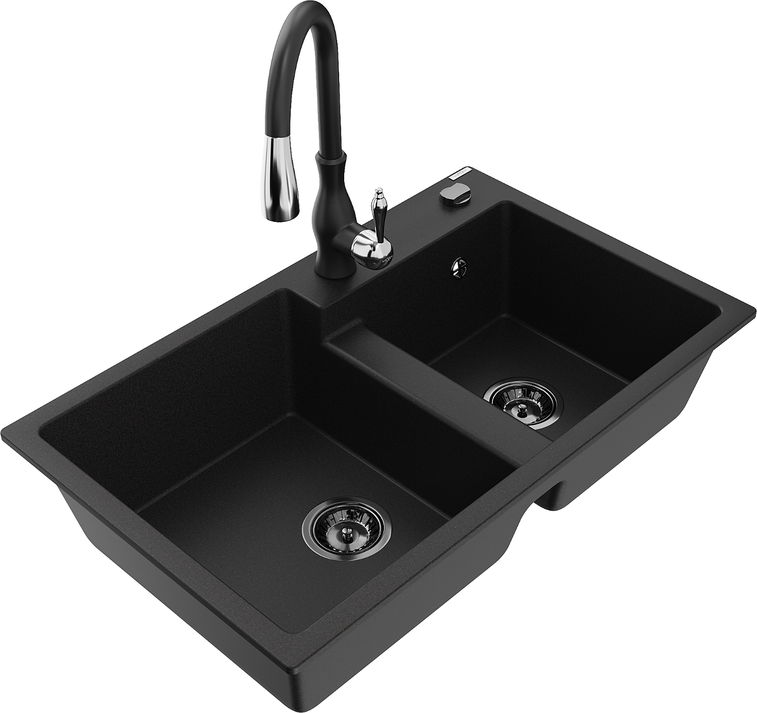 Mexen Tomas kétkamrás gránit mosogató konyhai csappal Savita, fekete - 6516-77-672601-70-B