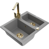 Mexen Carlos gránit mosogatótálca 1,5 rekeszes, Rita konyhai csapteleppel, fekete/arany metál - 6518-75-670300-50