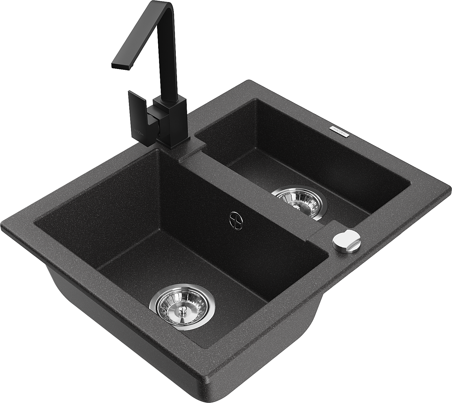 Mexen Carlos 1,5 medencés gránit mosogató Rita konyhai csapteleppel, fekete foltos - 6518-76-670300-70
