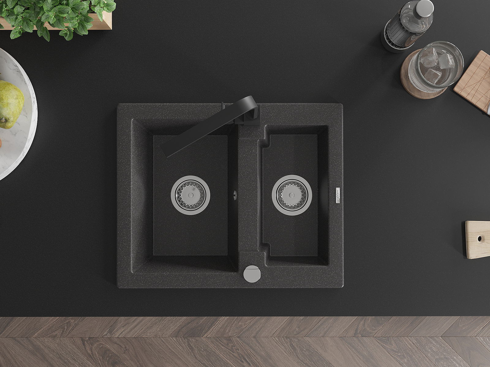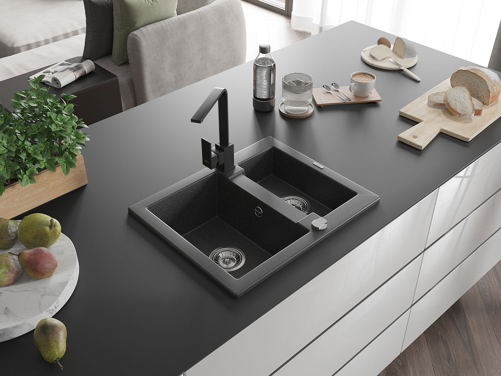 A mosogató kiváló minőségű gránitból készül. Ez egy elegáns és mindenekelőtt minden konyhához praktikus kiegészítés, stílusától függetlenül. A kiváló minőségű és a gránit tartósság biztosítja a sok éves használatát.