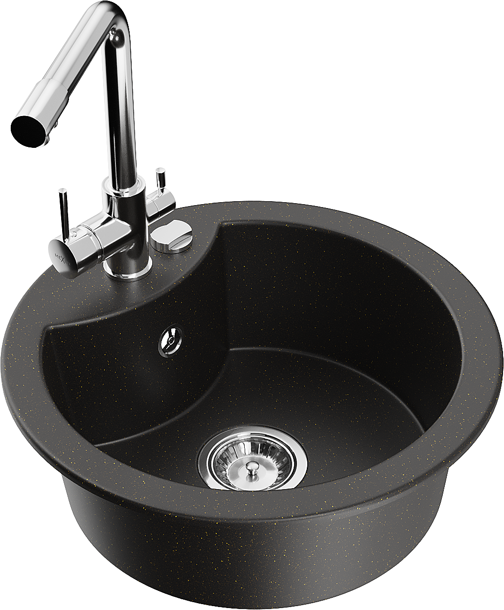 Mexen Diego 1-medencés gránit mosogató konyhai csapteleppel Duero, fekete/arany metál - 6512-75-671600-00