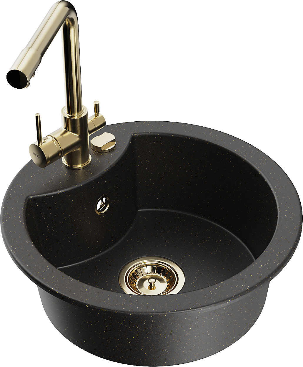 Mexen Diego egymedencés gránit mosogató Duero konyhai csapteleppel, fekete/arany metál - 6512-75-671600-50