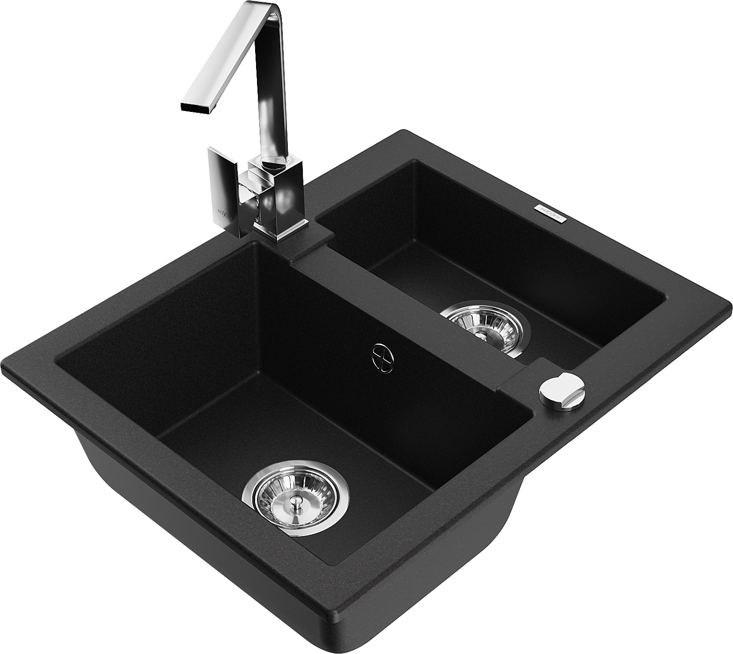Mexen Carlos 1,5-medencés gránit mosogató Rita konyhai csapteleppel, fekete - 6518-77-670300-00