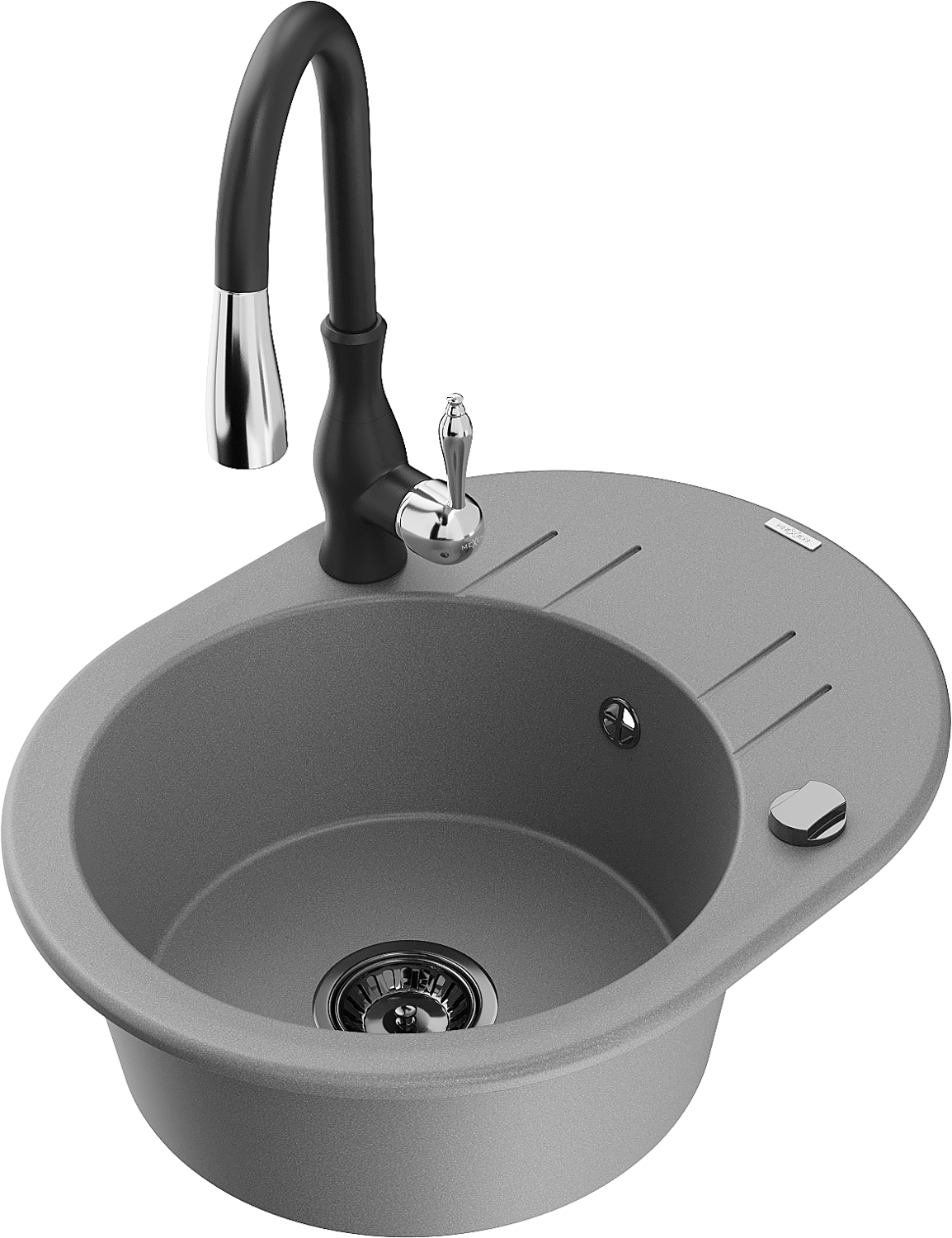 Mexen Kevin egytálcás gránit mosogatócsepptálcával és Savita konyhai csappal, szürke - 6517-71-672601-70-B