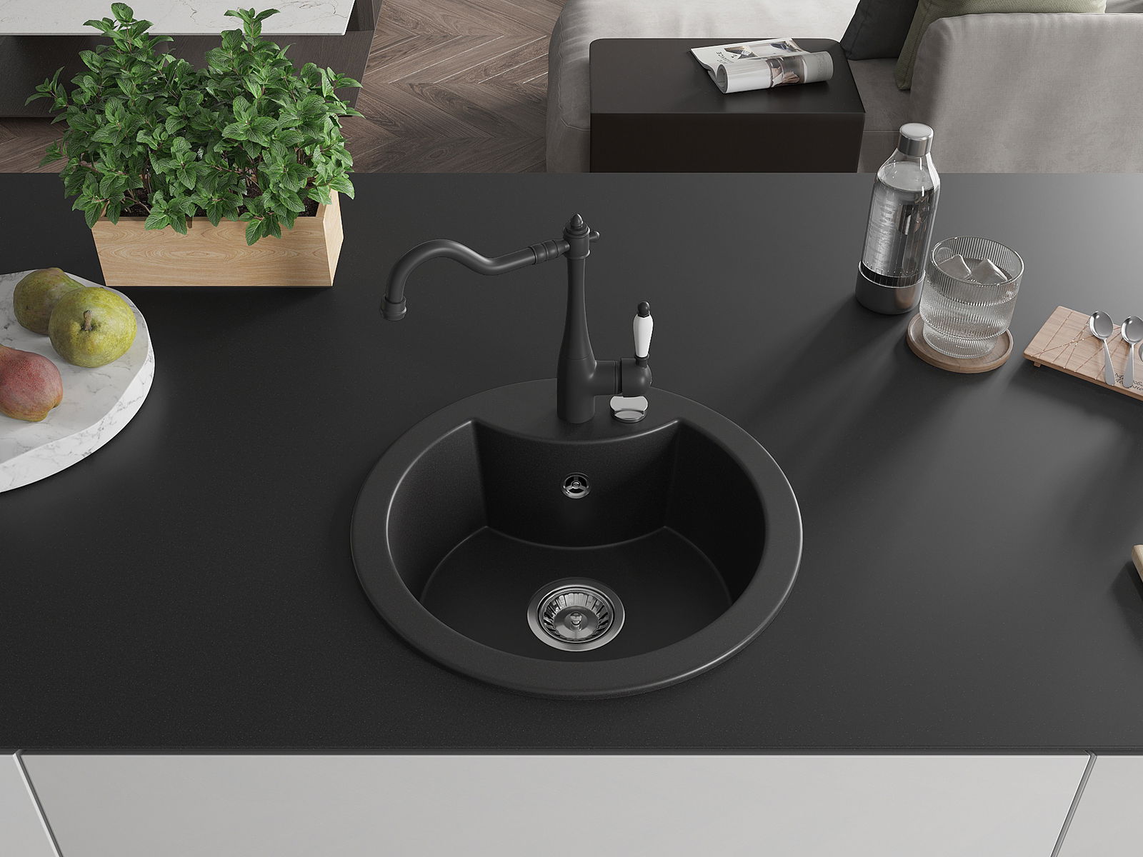 A mosogató magas minőségű gránitból készült. Elegáns, de mindenekelőtt praktikus kiegészítője minden konyhának, függetlenül annak stílusától. A gránit magas minősége és tartóssága hosszú távú használatot biztosít.
