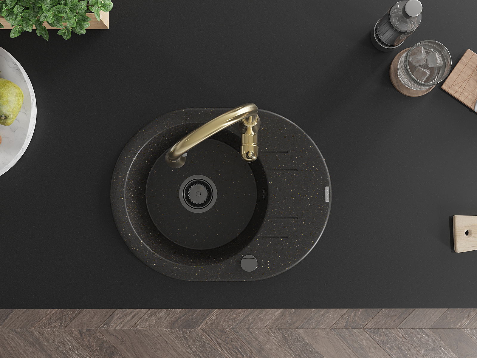 A mosogató kiváló minőségű gránitból készül. Ez egy elegáns és mindenekelőtt minden konyhához praktikus kiegészítés, stílusától függetlenül. A kiváló minőségű és a gránit tartósság biztosítja a sok éves használatát.