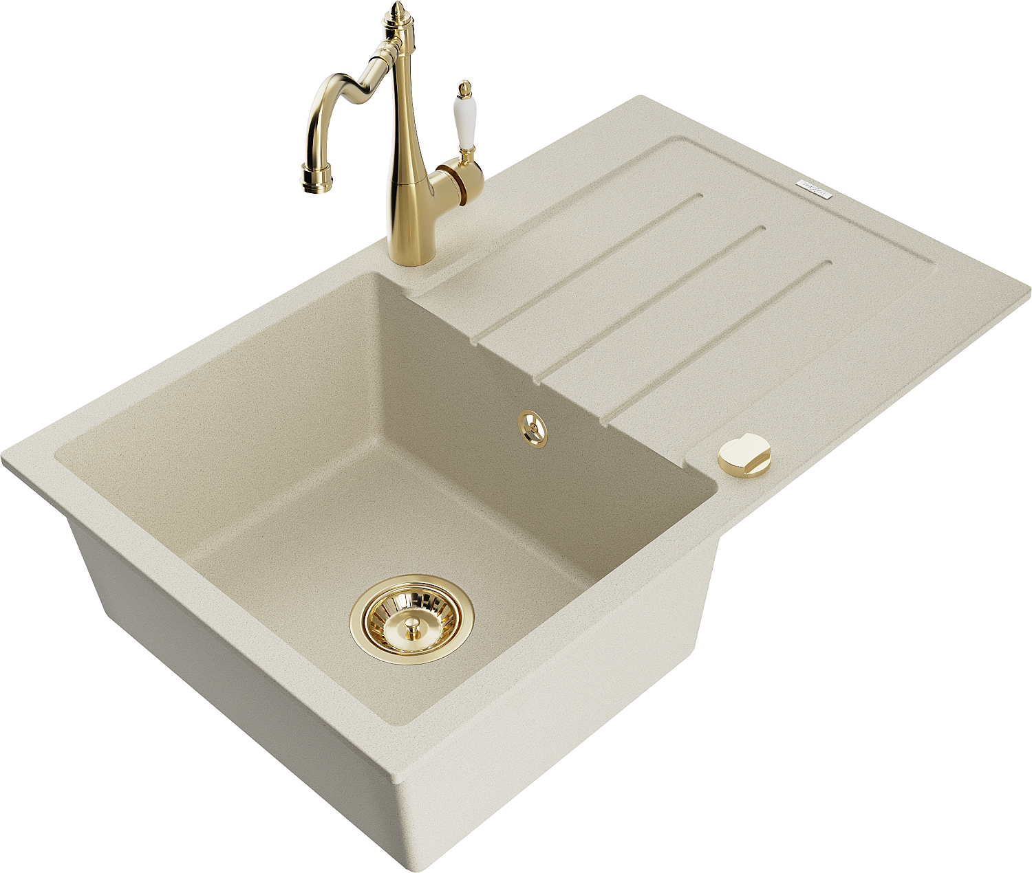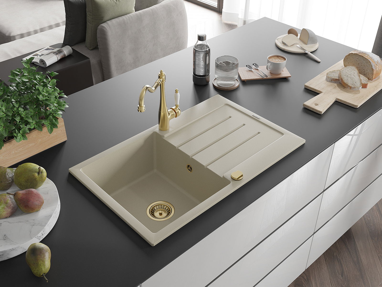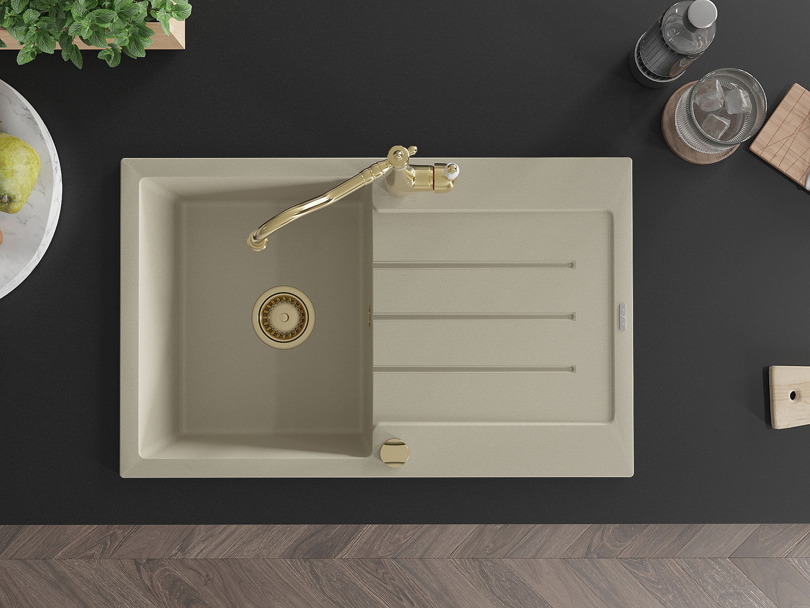 Mexen Bruno egy rekeszes gránit mosogató csepptálcával és Carla konyhai csapteleppel, bézs - 6513-69-670700-50