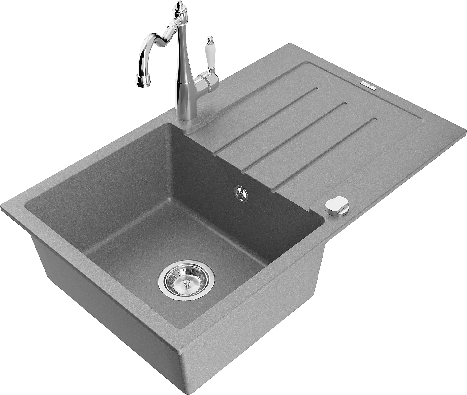 Mexen Bruno 1 rekeszes gránit mosogató lefolyóval és Carla konyhai csappal, szürke - 6513-71-670700-00