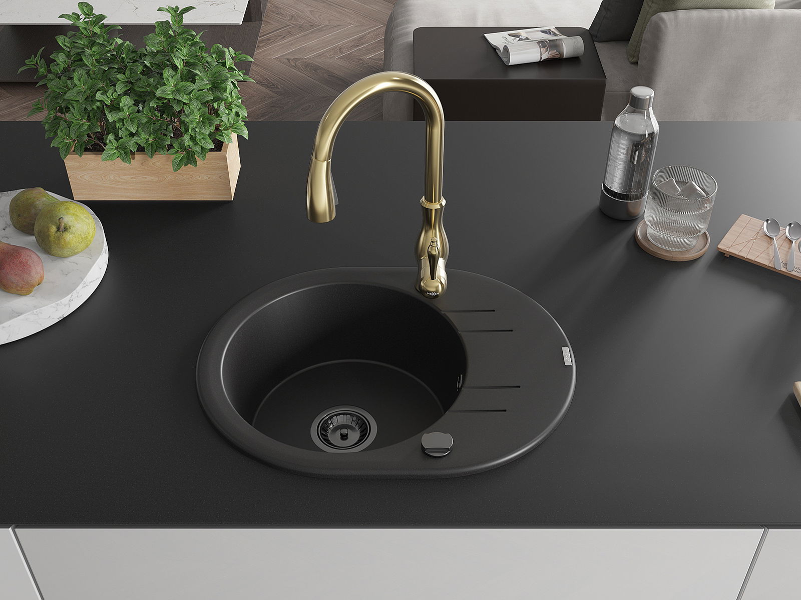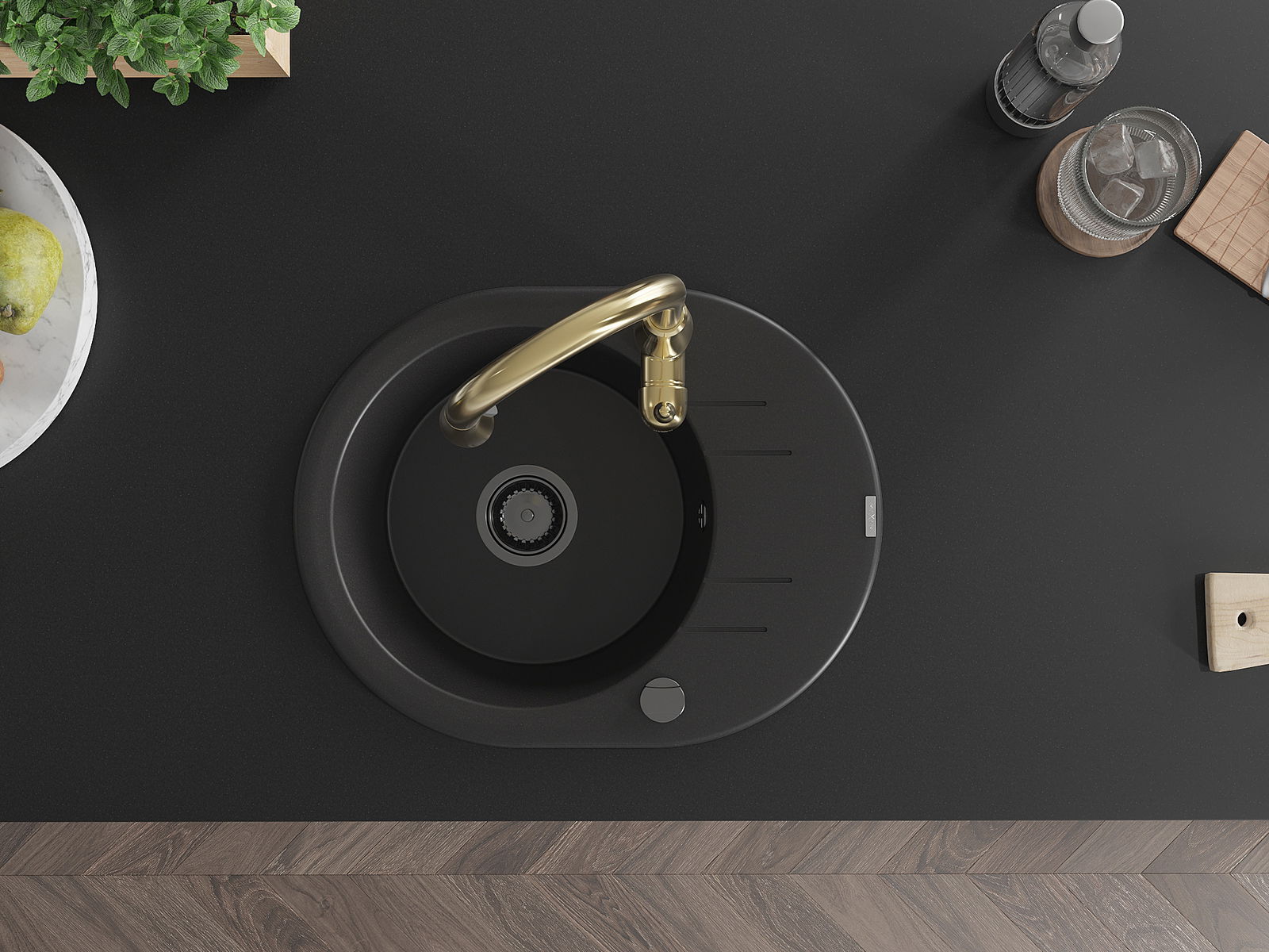 A mosogató kiváló minőségű gránitból készül. Ez egy elegáns és mindenekelőtt minden konyhához praktikus kiegészítés, stílusától függetlenül. A kiváló minőségű és a gránit tartósság biztosítja a sok éves használatát.