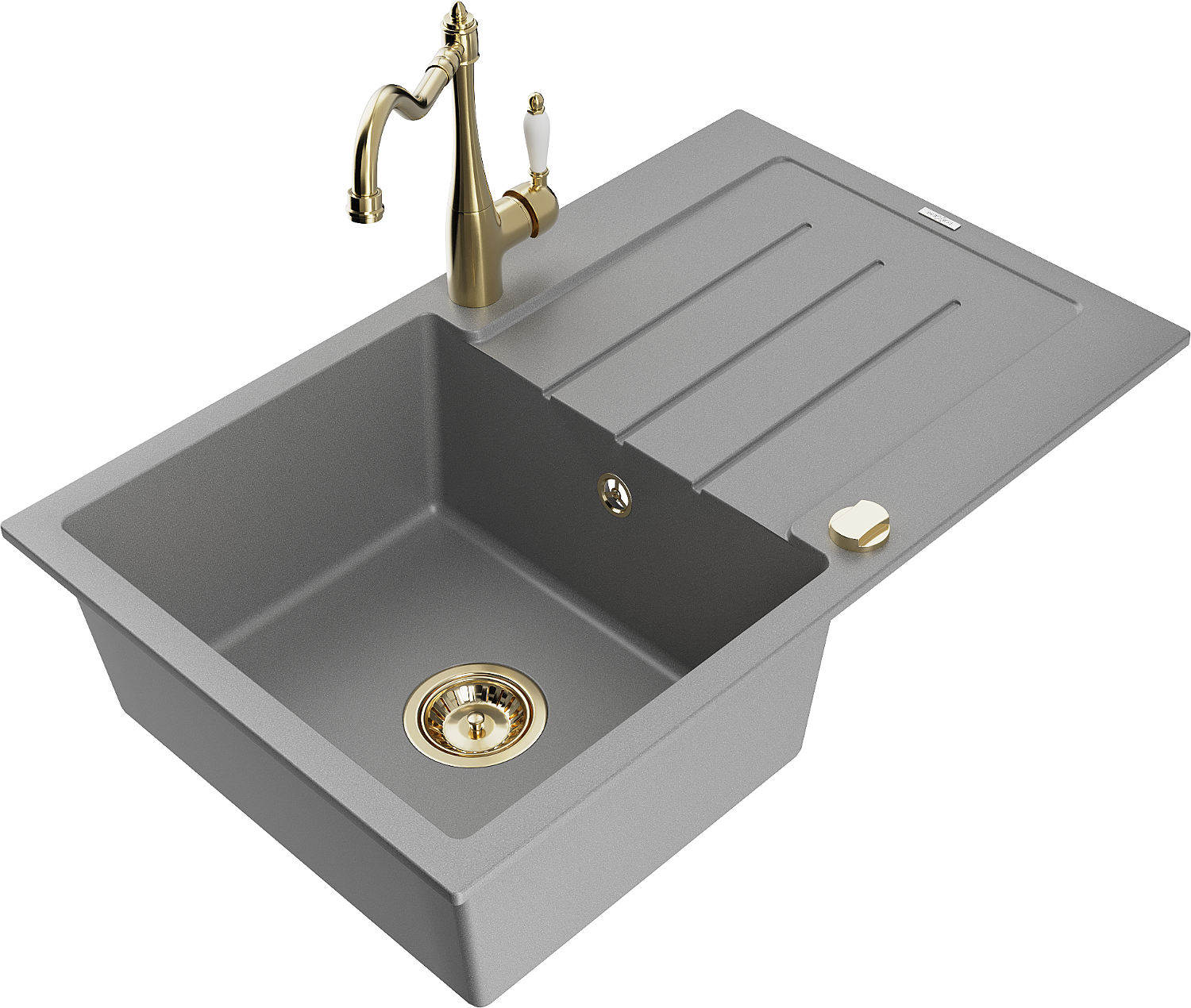 Mexen Bruno egymedencés gránit mosogató csepegtetővel és Carla konyhai csapteleppel, szürke - 6513-71-670700-50