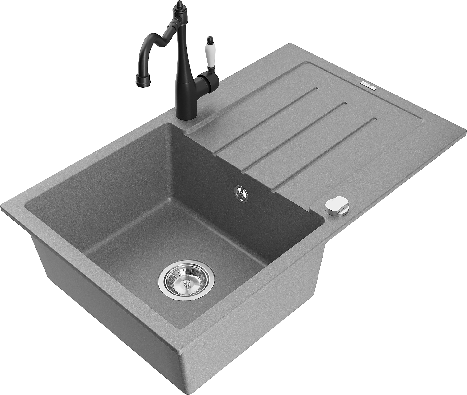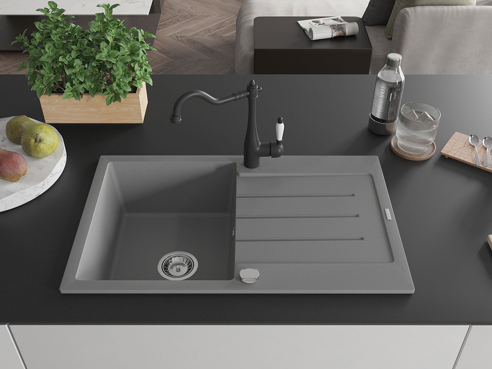 A mosogató kiváló minőségű gránitból készül. Ez egy elegáns és mindenekelőtt minden konyhához praktikus kiegészítés, stílusától függetlenül. A kiváló minőségű és a gránit tartósság biztosítja a sok éves használatát.