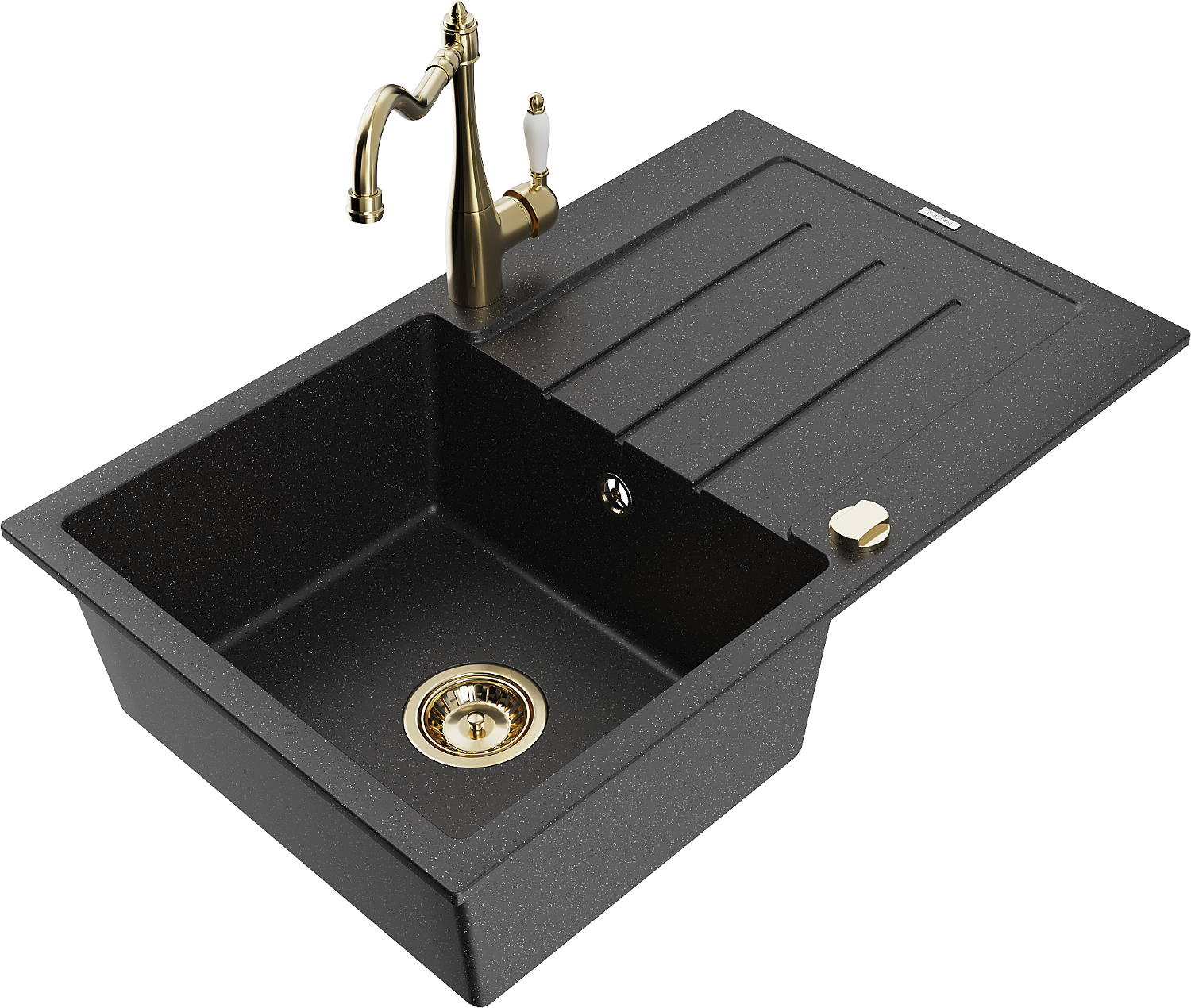 Mexen Bruno egymedencés gránit mosogató csepegtetővel és Carla konyhai csapteleppel, fekete/ezüst metál - 6513-73-670700-50
