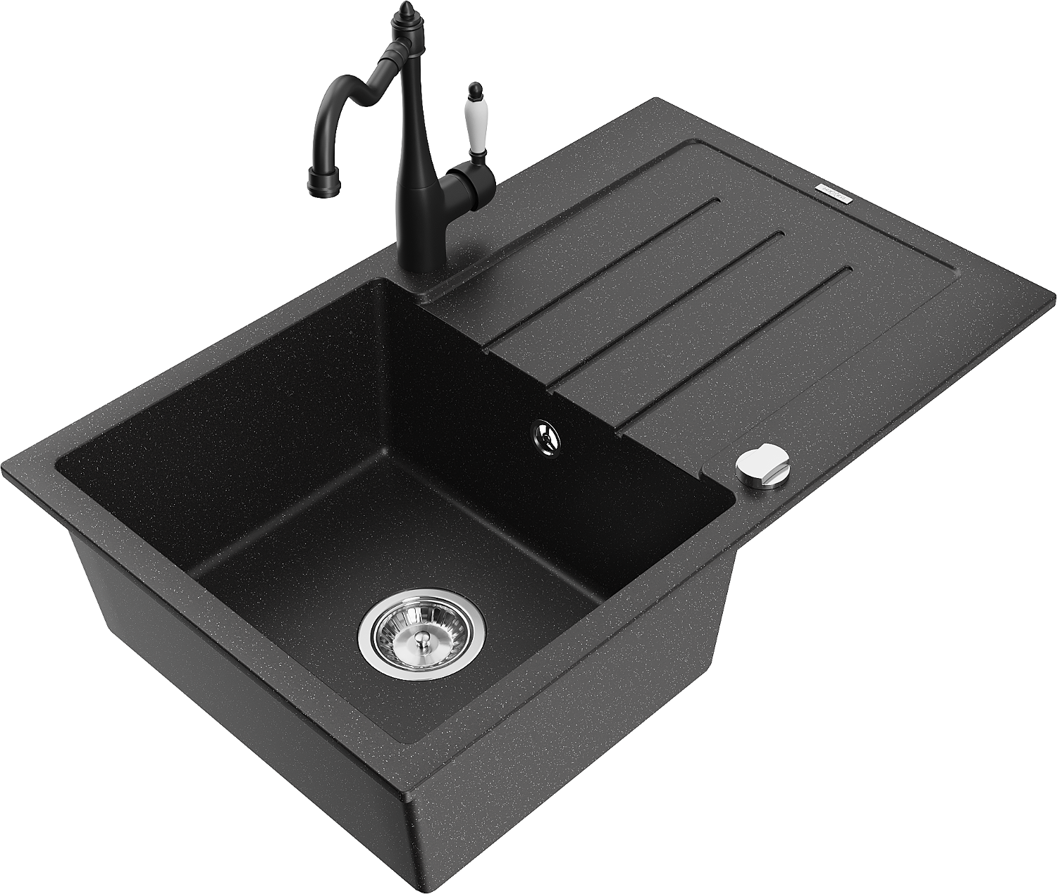 A mosogató kiváló minőségű gránitból készül. Ez egy elegáns és mindenekelőtt minden konyhához praktikus kiegészítés, stílusától függetlenül. A kiváló minőségű és a gránit tartósság biztosítja a sok éves használatát.
