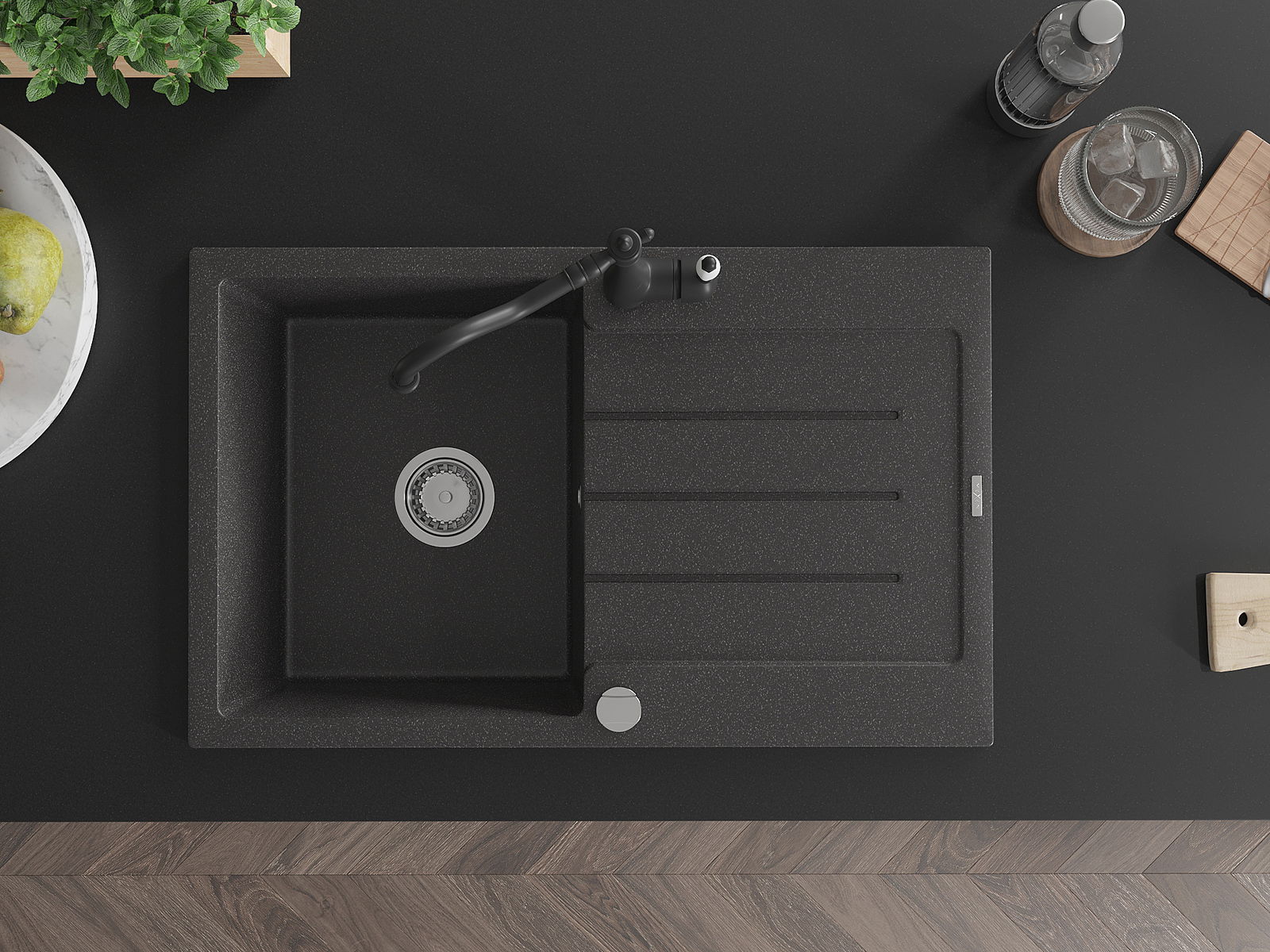 A mosogató kiváló minőségű gránitból készül. Ez egy elegáns és mindenekelőtt minden konyhához praktikus kiegészítés, stílusától függetlenül. A kiváló minőségű és a gránit tartósság biztosítja a sok éves használatát.