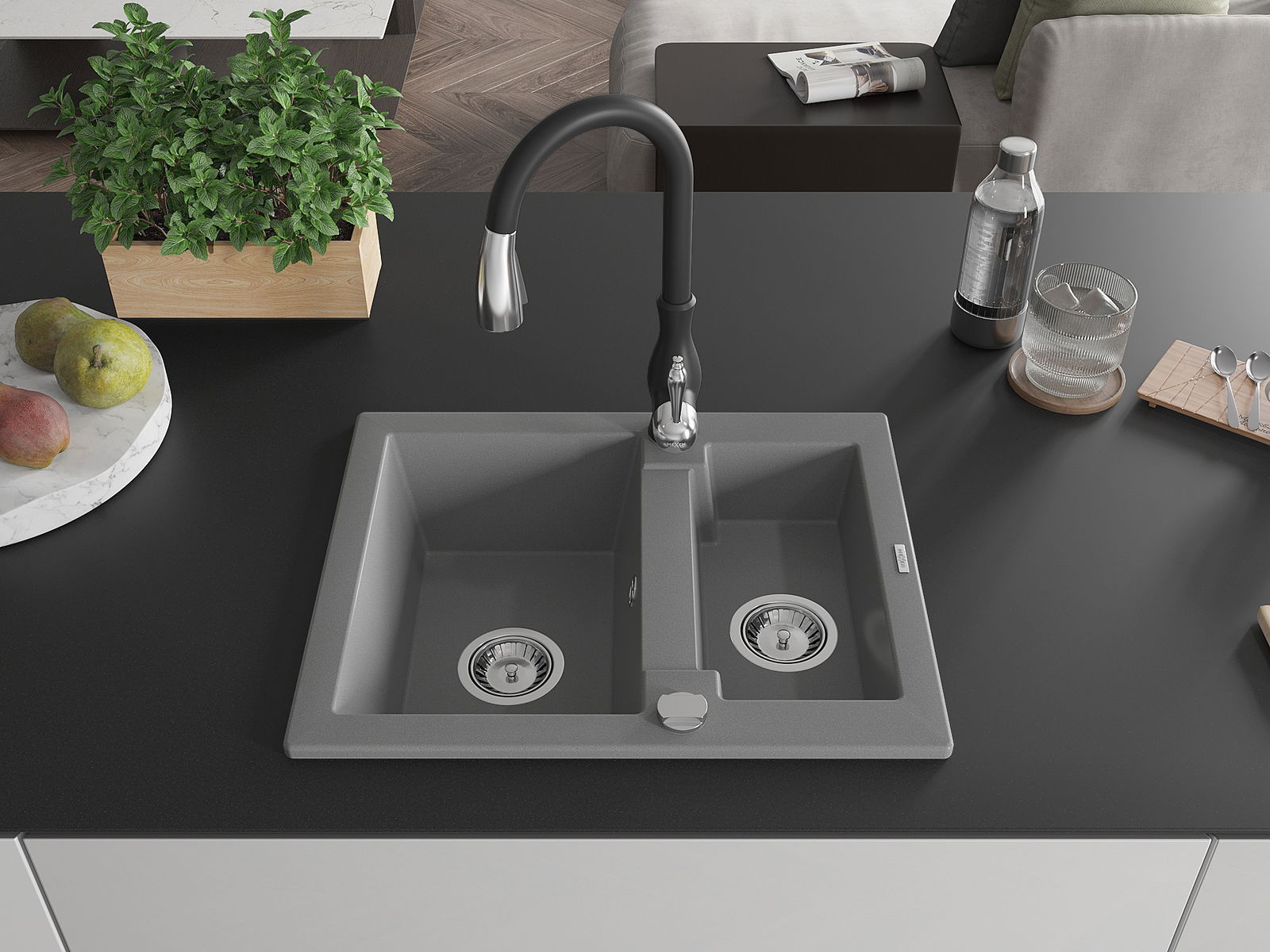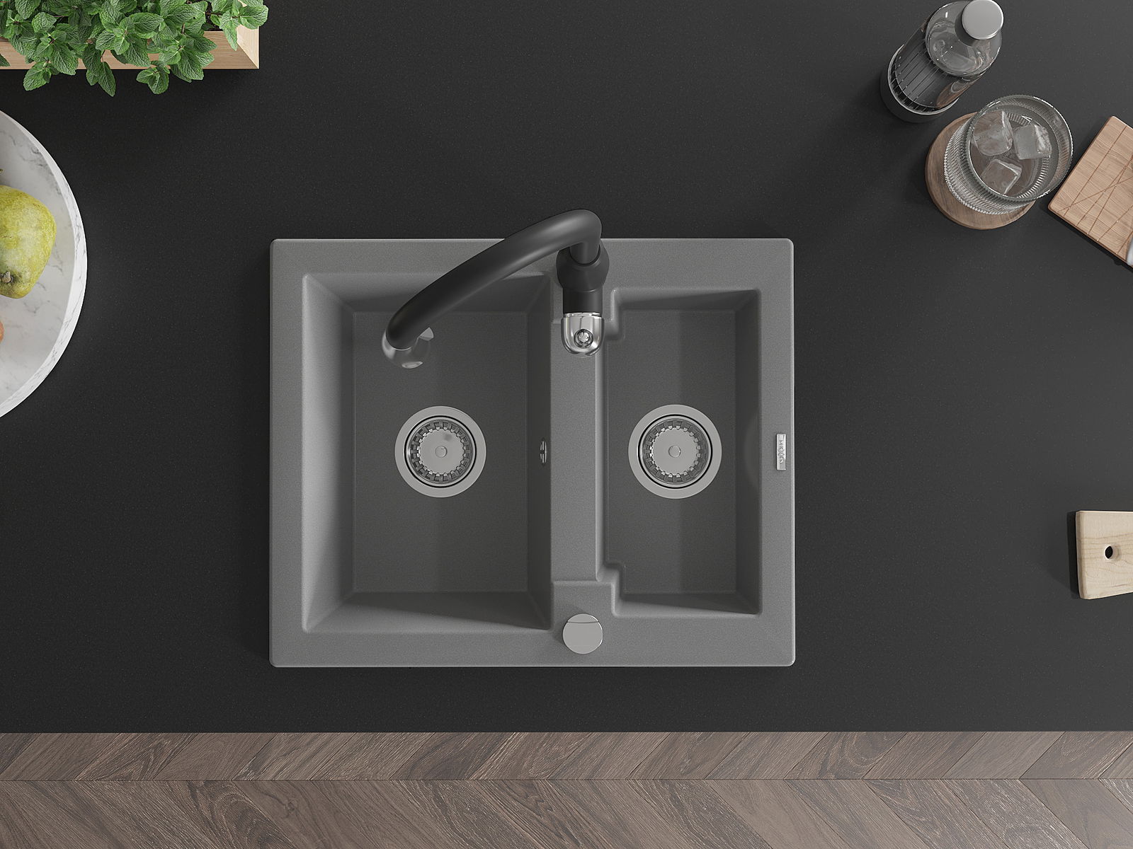 A mosogató magas minőségű gránitból készült. Elegáns, de mindenekelőtt praktikus kiegészítője minden konyhának, függetlenül annak stílusától. A gránit magas minősége és tartóssága hosszú távú használatot biztosít.