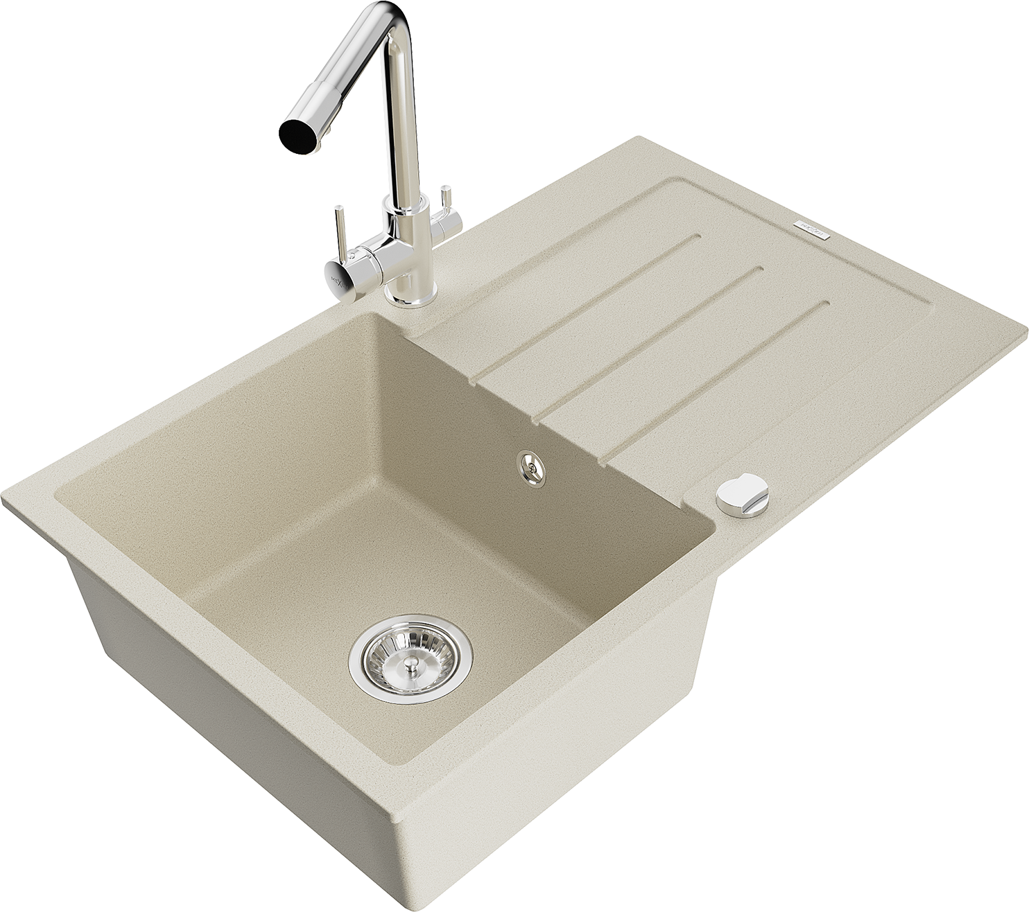 Mexen Bruno egymedencés gránit mosogató csepegtetővel és Duero konyhai csappal, bézs - 6513-69-671600-00