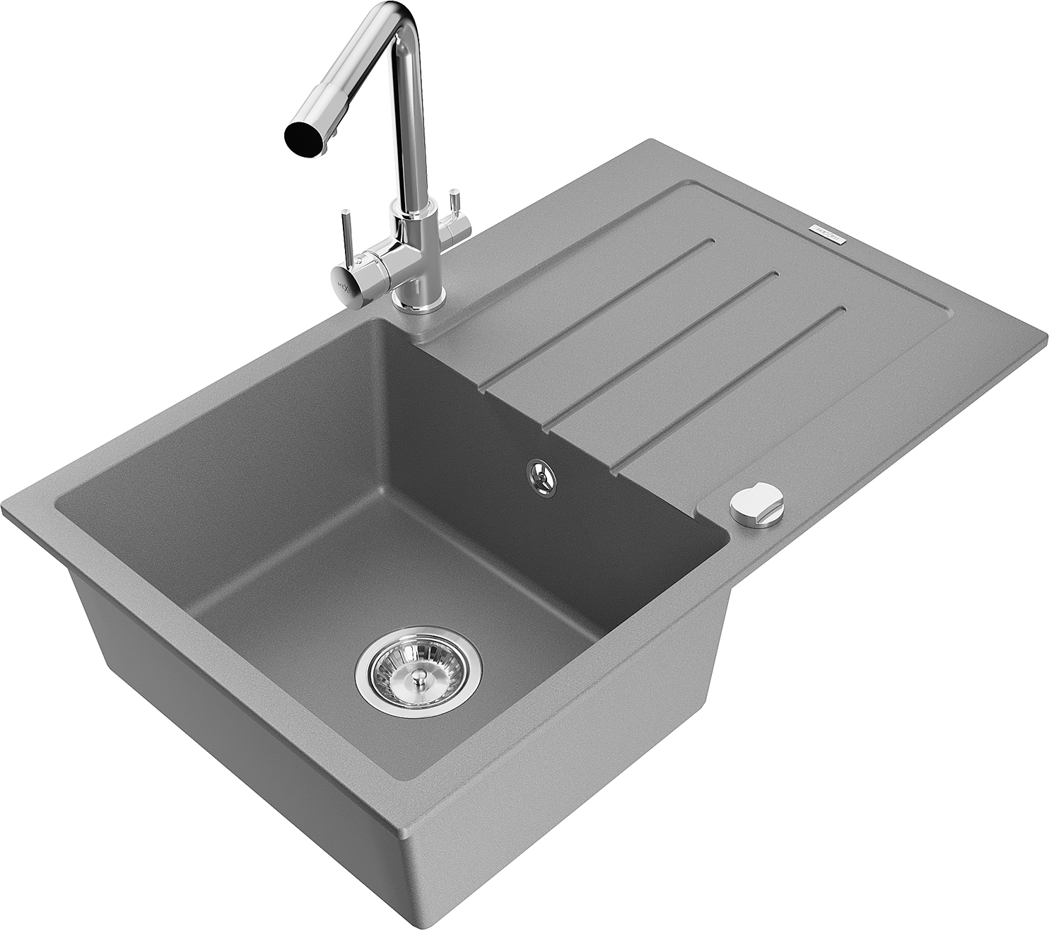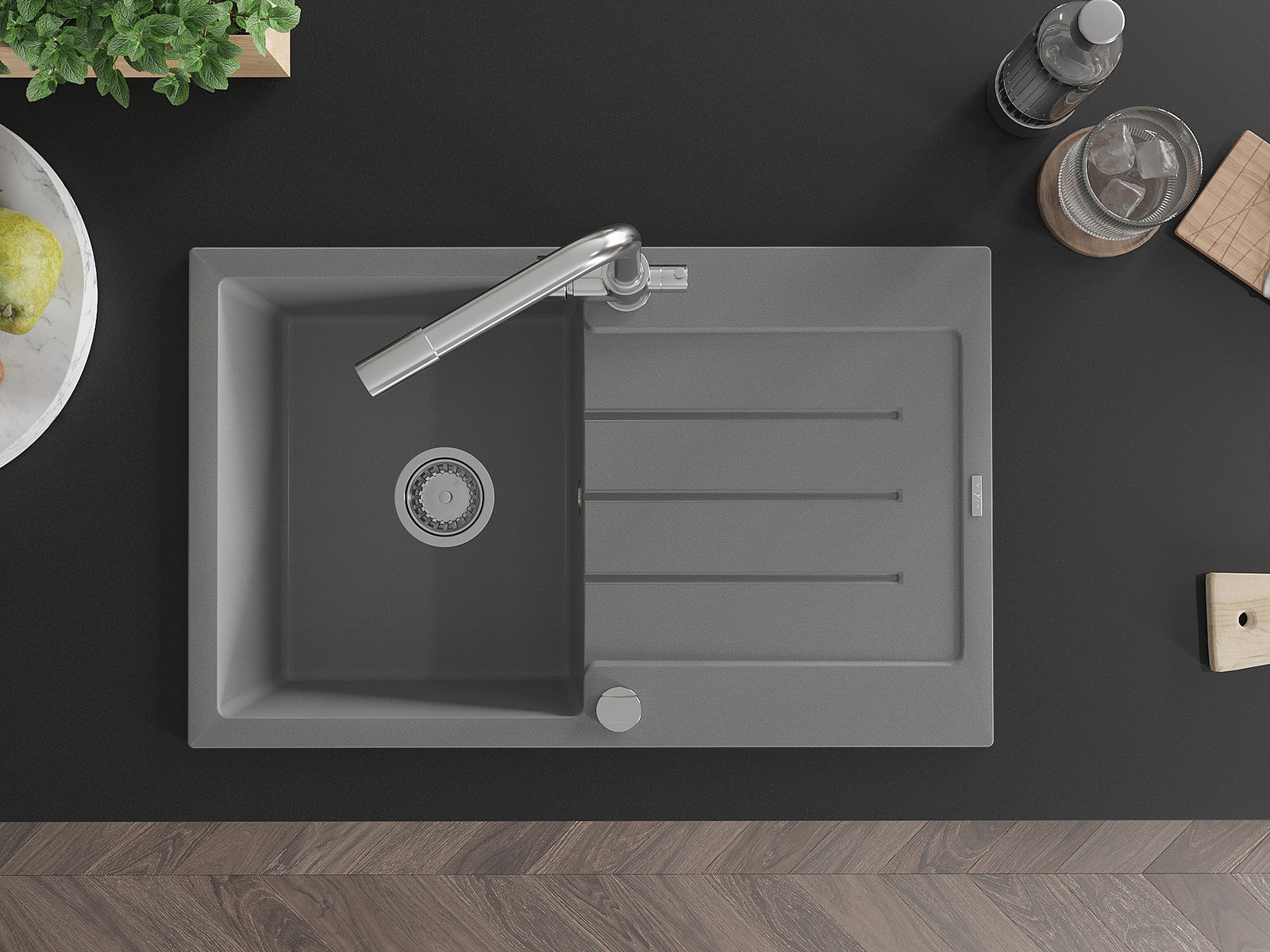 Mexen Bruno 1 rekeszes gránit mosogató lefolyóval és Duero konyhai csappal, szürke - 6513-71-671600-00