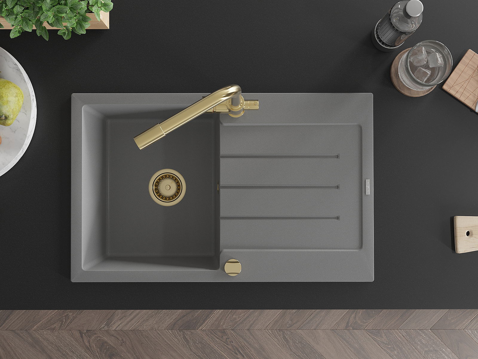 Mexen Bruno 1-medencés gránit mosogatócsepegtetővel és Duero konyhai csapteleppel, szürke - 6513-71-671600-50