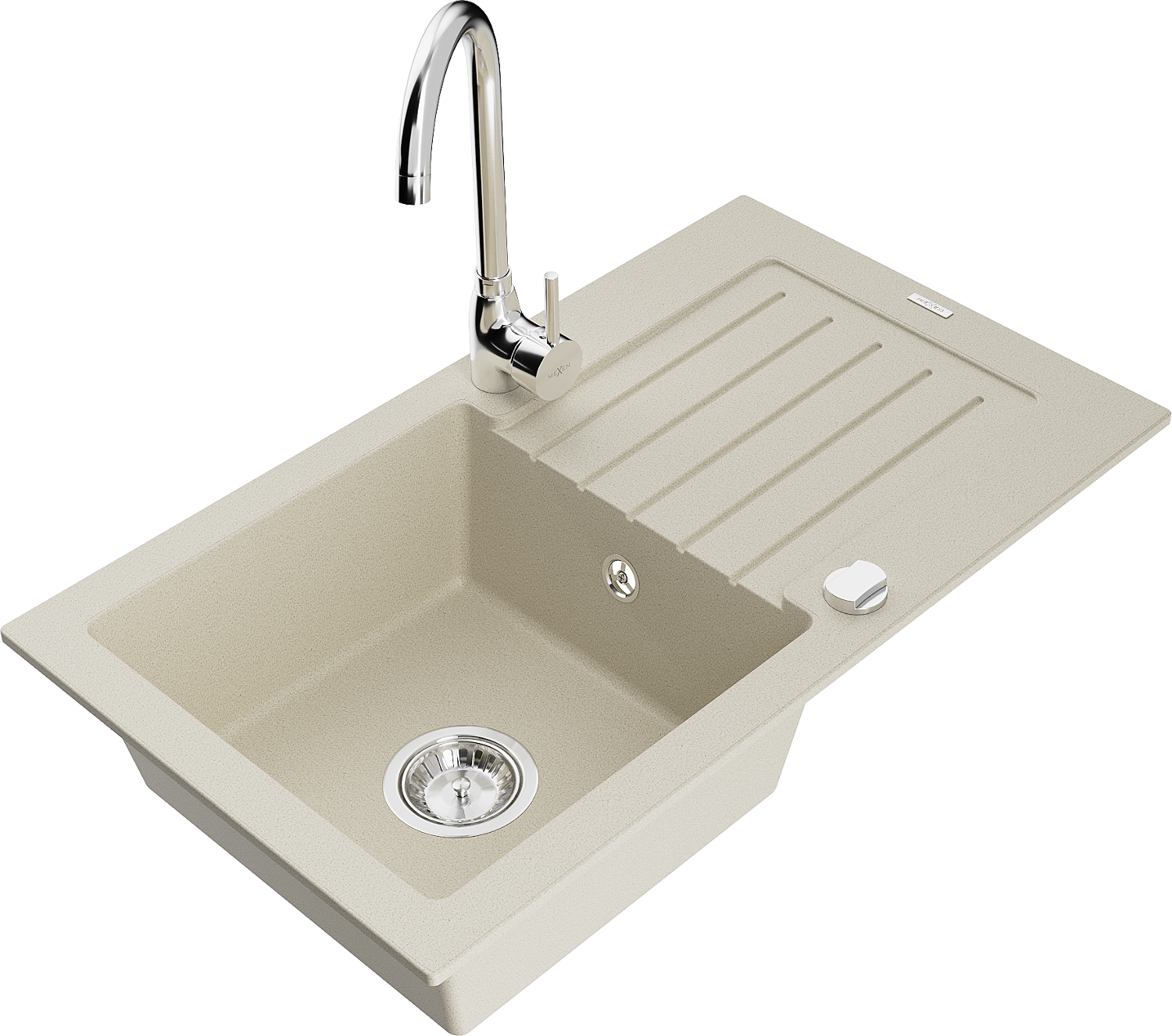 Mexen Pablo 1-medencés gránit mosogató csepegtetővel és Telma konyhai csapteleppel, bézs - 6510-69-670200-00