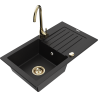 Mexen Pablo egymedencés gránit mosogató csepegtetővel és Telma konyhai csapteleppel, bézs - 6510-69-670200-50