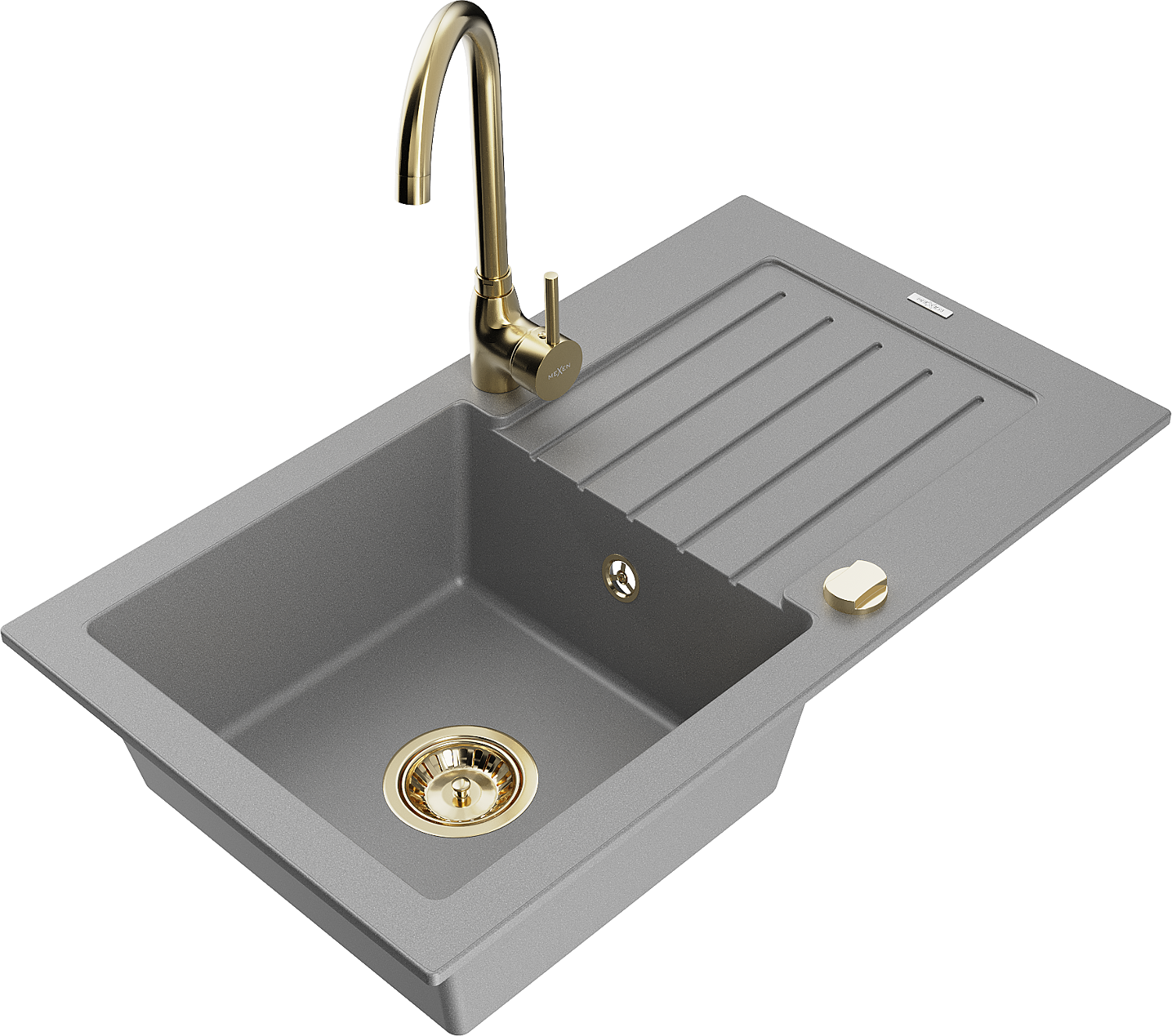 Mexen Pablo egymedencés gránit mosogató csepptálcával és Telma konyhai csappal, szürke - 6510-71-670200-50