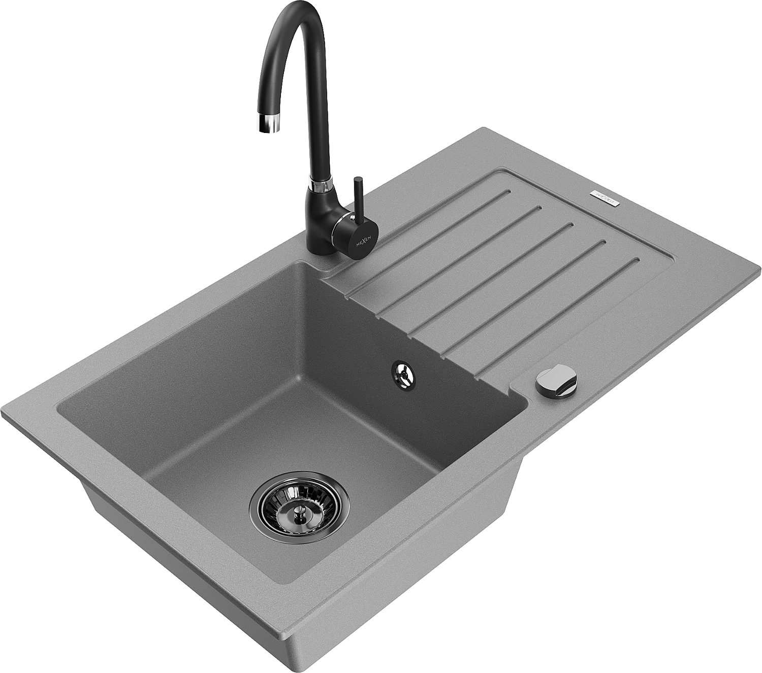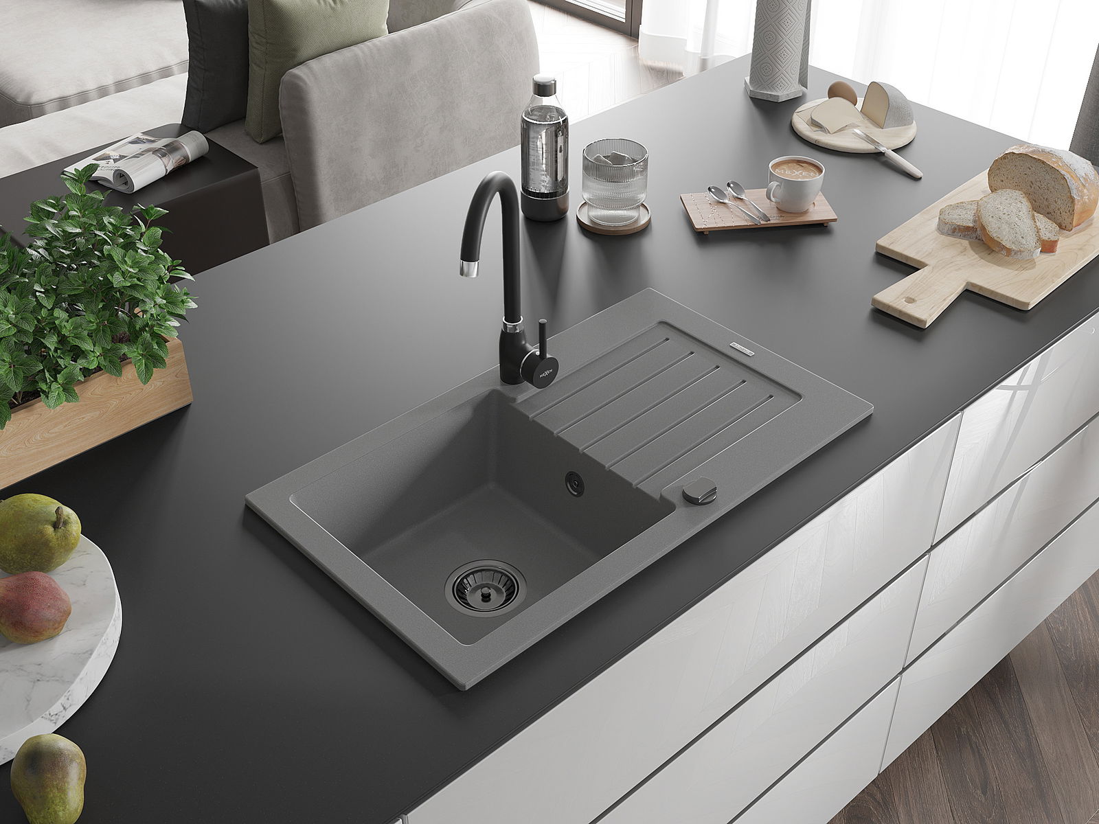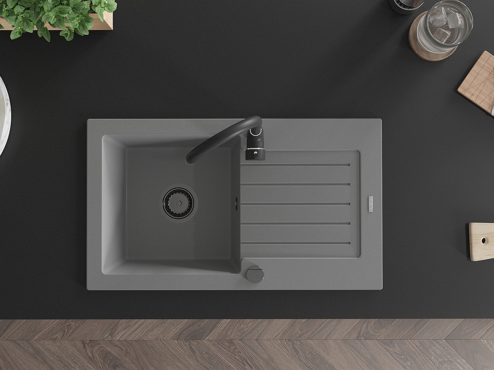 Mexen Pablo 1-medencés gránit mosogató csepegtetővel és Telma konyhai csapteleppel, szürke - 6510-71-670200-70-B