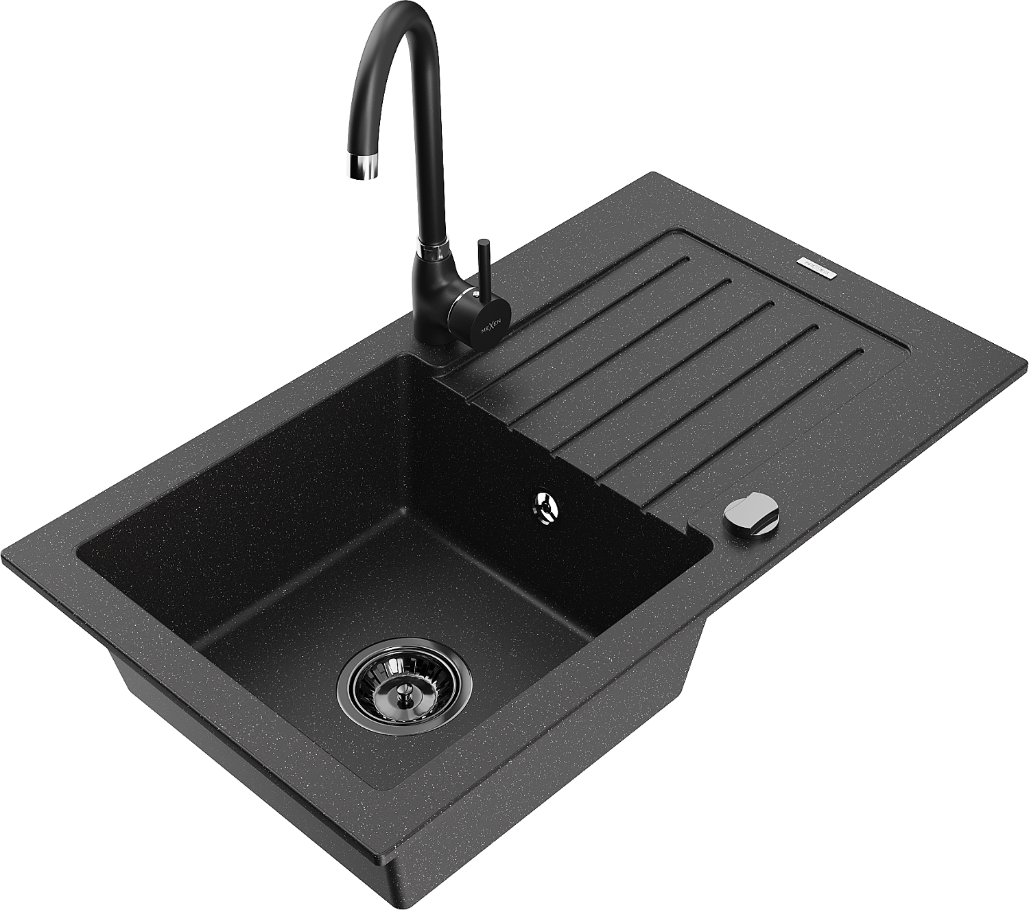 Mexen Pablo 1-medencés gránit mosogató lefolyóval és Telma konyhai csapteleppel, fekete/ezüst - 6510-73-670200-70-B