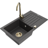 Mexen Pablo egymedencés gránit mosogató csepptálcával és Telma konyhai csapteleppel, fekete/arany - 6510-75-670200-50-B
