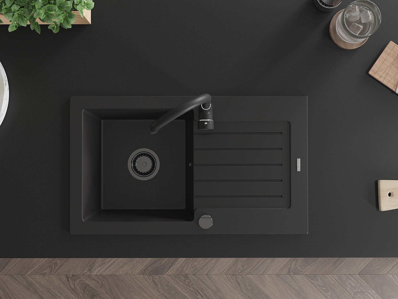 A mosogató magas minőségű gránitból készült. Elegáns, de mindenekelőtt praktikus kiegészítője minden konyhának, függetlenül annak stílusától. A gránit magas minősége és tartóssága hosszú távú használatot biztosít.