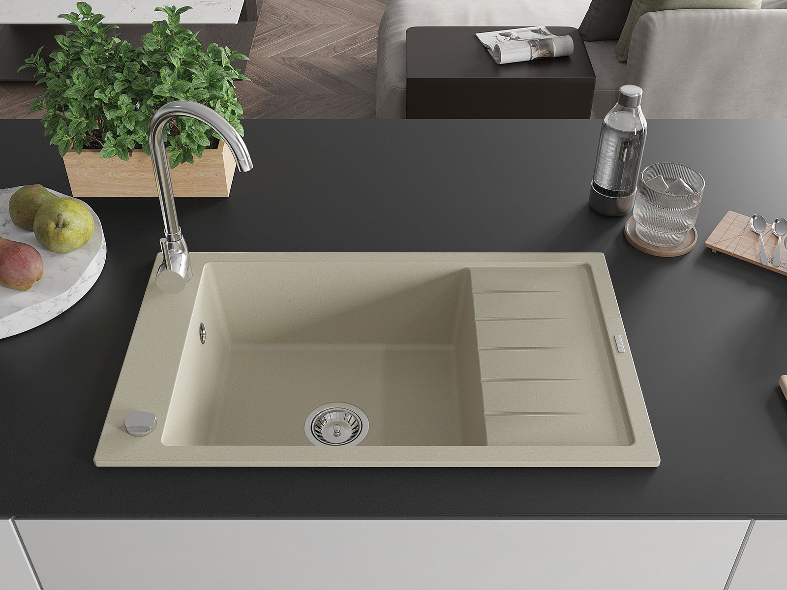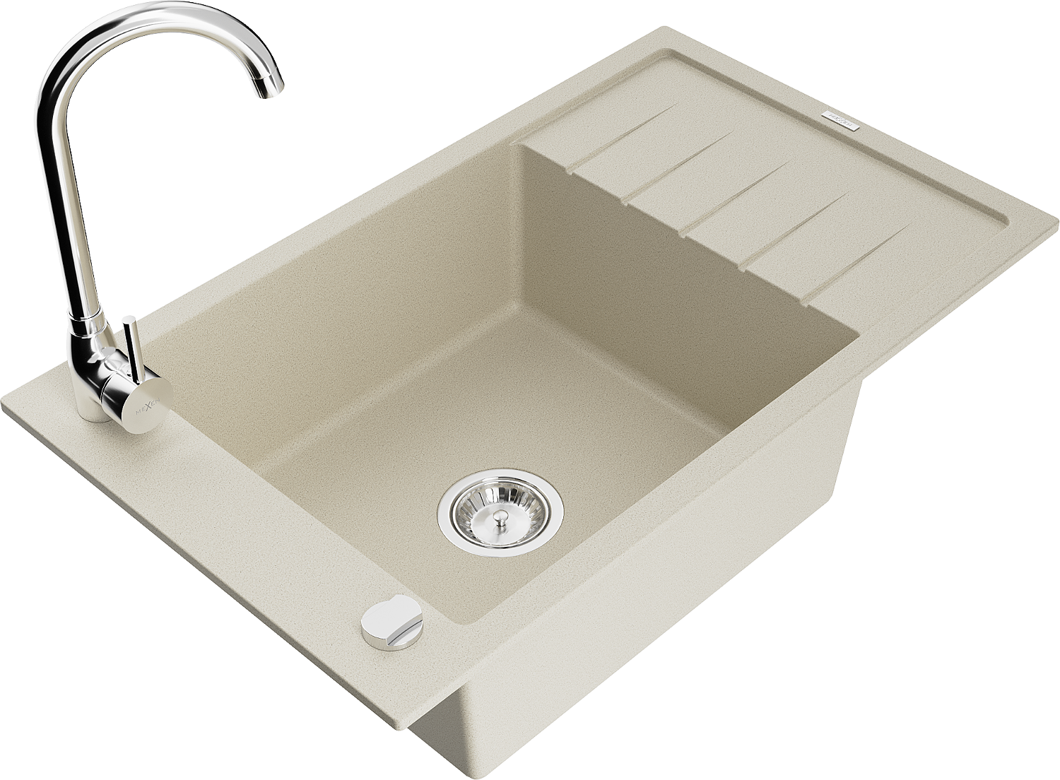 Mexen Elias egymedencés gránit mosogató lecsepegtetővel és Telma konyhai csappal, bézs - 6511-69-670200-00