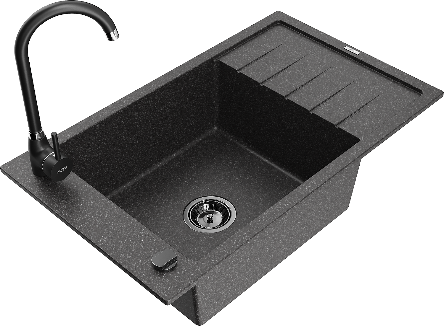 Mexen Elias 1-medencés gránit mosogató csepegtetővel és Telma konyhai csapteleppel, fekete pöttyös - 6511-76-670200-70-B