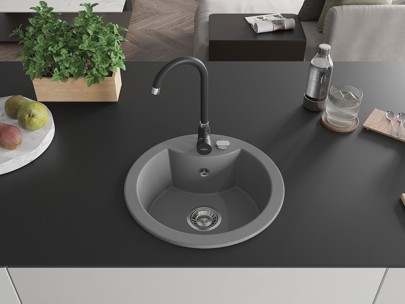A mosogató kiváló minőségű gránitból készül. Ez egy elegáns és mindenekelőtt minden konyhához praktikus kiegészítés, stílusától függetlenül. A kiváló minőségű és a gránit tartósság biztosítja a sok éves használatát.