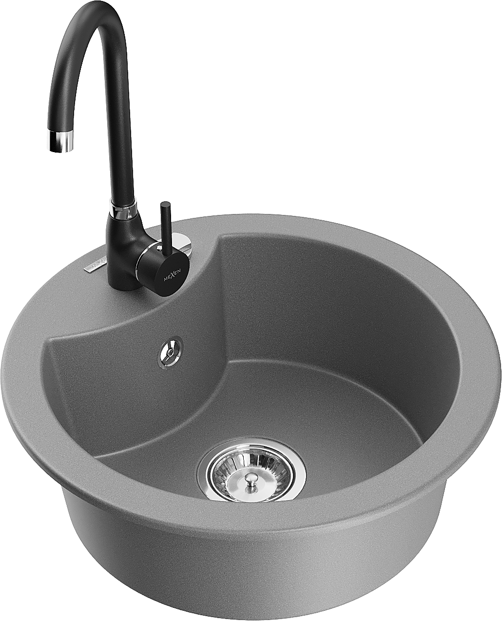 Mexen Diego 1-medencés gránit mosogató Telma konyhai csappal, szürke - 6512-71-670200-70