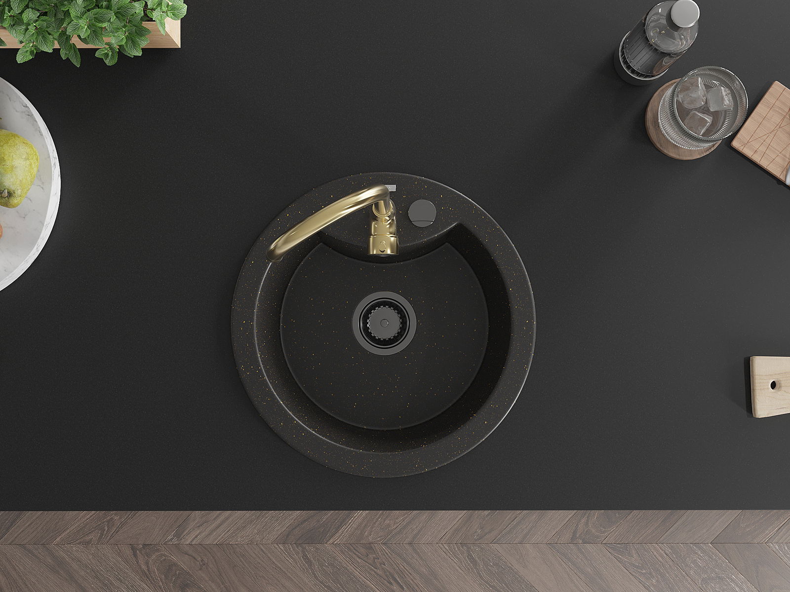 A mosogató kiváló minőségű gránitból készül. Ez egy elegáns és mindenekelőtt minden konyhához praktikus kiegészítés, stílusától függetlenül. A kiváló minőségű és a gránit tartósság biztosítja a sok éves használatát.