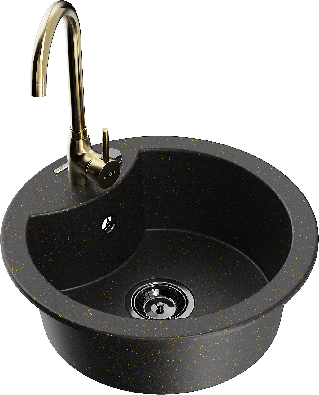 Mexen Diego gránit mosogató 1-medencés konyhai csapteleppel Telma, fekete/arany - 6512-75-670200-50-B