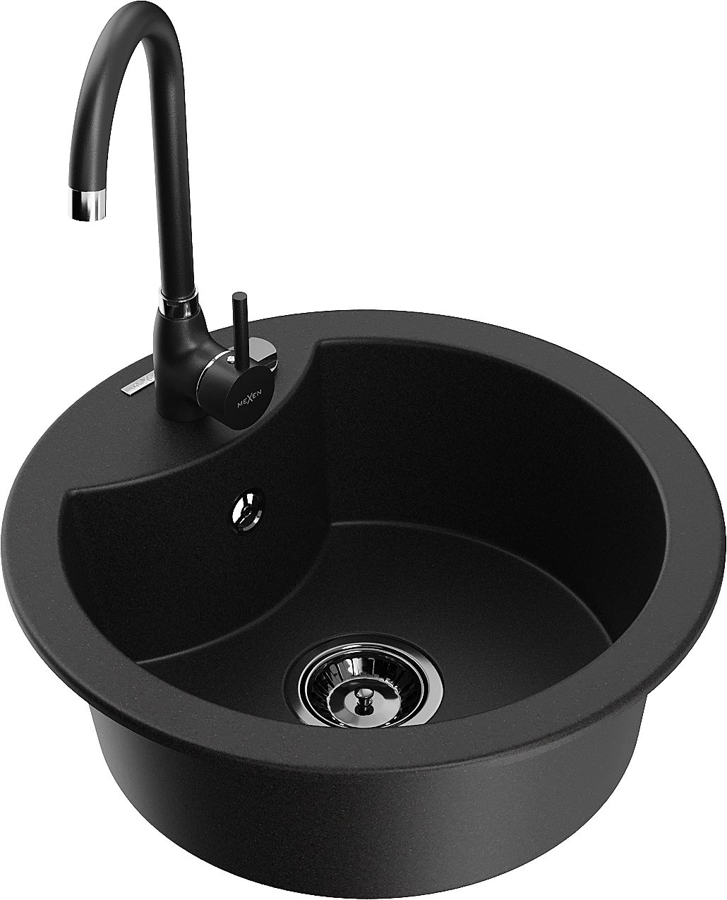 Mexen Diego 1-medencés gránit mosogató Telma konyhai csappal, fekete - 6512-77-670200-70-B